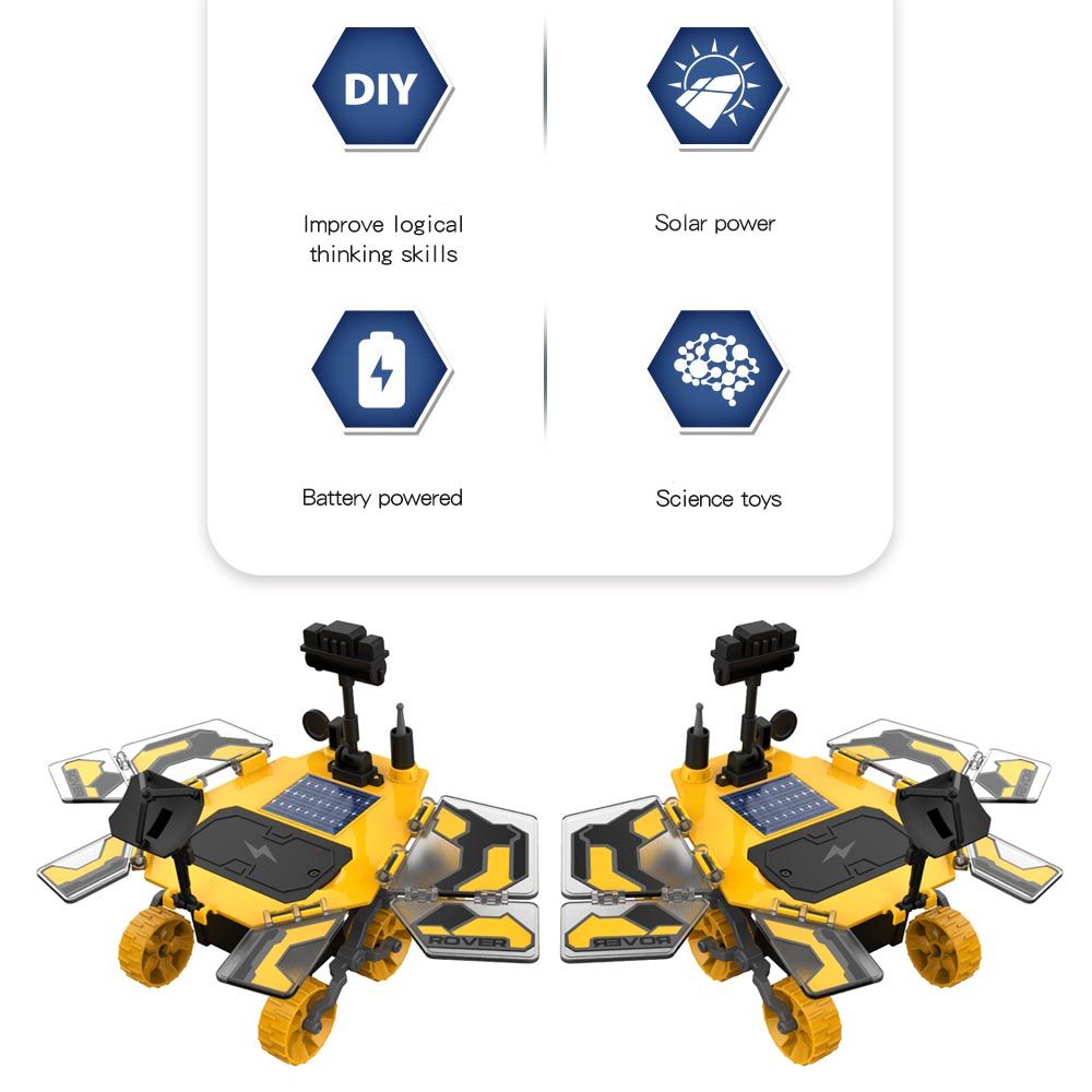 Little story DIY Solar Mars exploration rover is a unique scientific and technological educational toy that cultivate children's various ability during the growth process. This Mars Rover may foster your kids' imagination for space and help them learn critical science and technical concepts. Made of high-quality ABS materials that are strong and durable, solar-powered Rover toy is very safe for kids to play with.