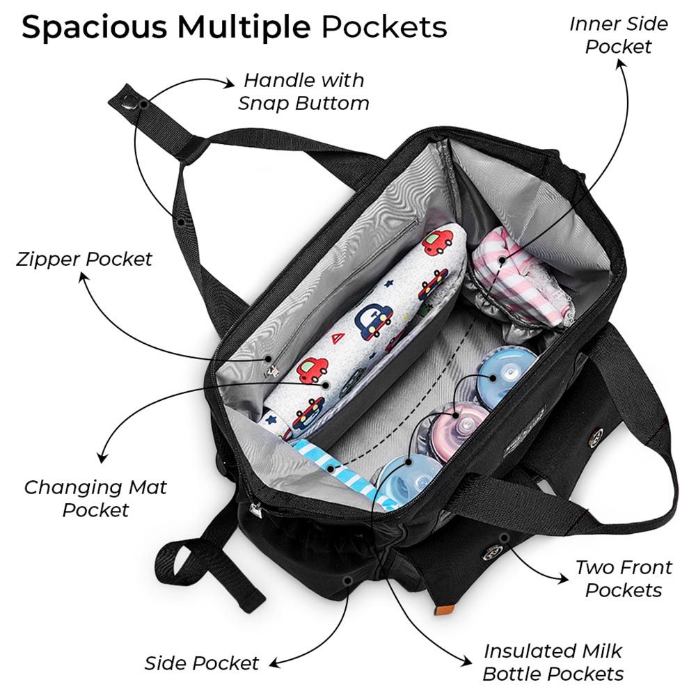 - Extra-wide Opening offers easy access to all baby essentials, also easy to close, comes with Stroller Hooks & Changing mat