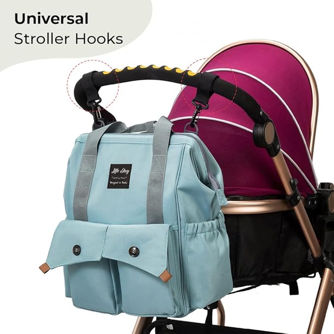 Little Story Elite Diaper Bag with Stroller Hooks & Changing Mat - Blue