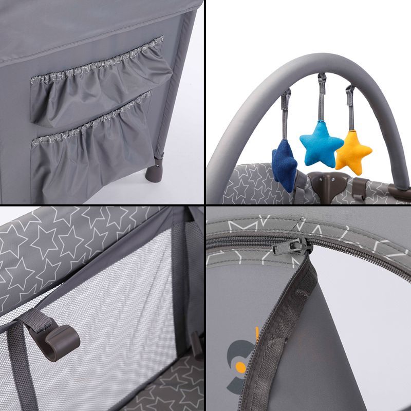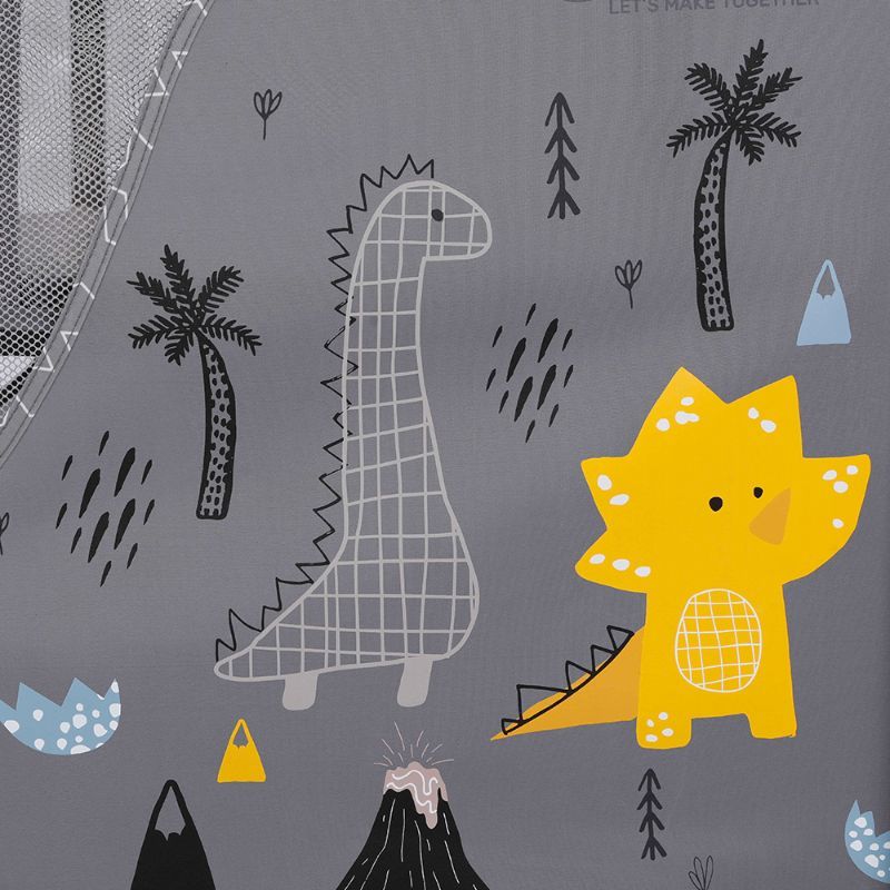 Taking care of your little one just got easier—and way more fun! Foldable Cot cum Playard is your go-to 2-in-1 solution, combining a cozy bassinet for sweet dreams with a roomy playard for all-day adventures. The second floor detaches easily for a seamless switch from nap time to playtime. Need to change a diaper? No worries—the built-in changing station with an organizer keeps everything at your fingertips. With raised borders for extra safety and ample space, outfit and diaper changes are fuss-free. Plus, three colorful plush toys help your baby build motor skills and hand-eye coordination. On the move? This foldable cot zips into a handy carry bag and includes wheels for smooth travel. And that adorable dino design? Total nursery win