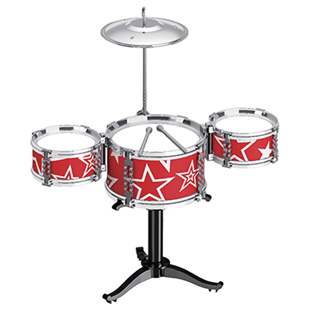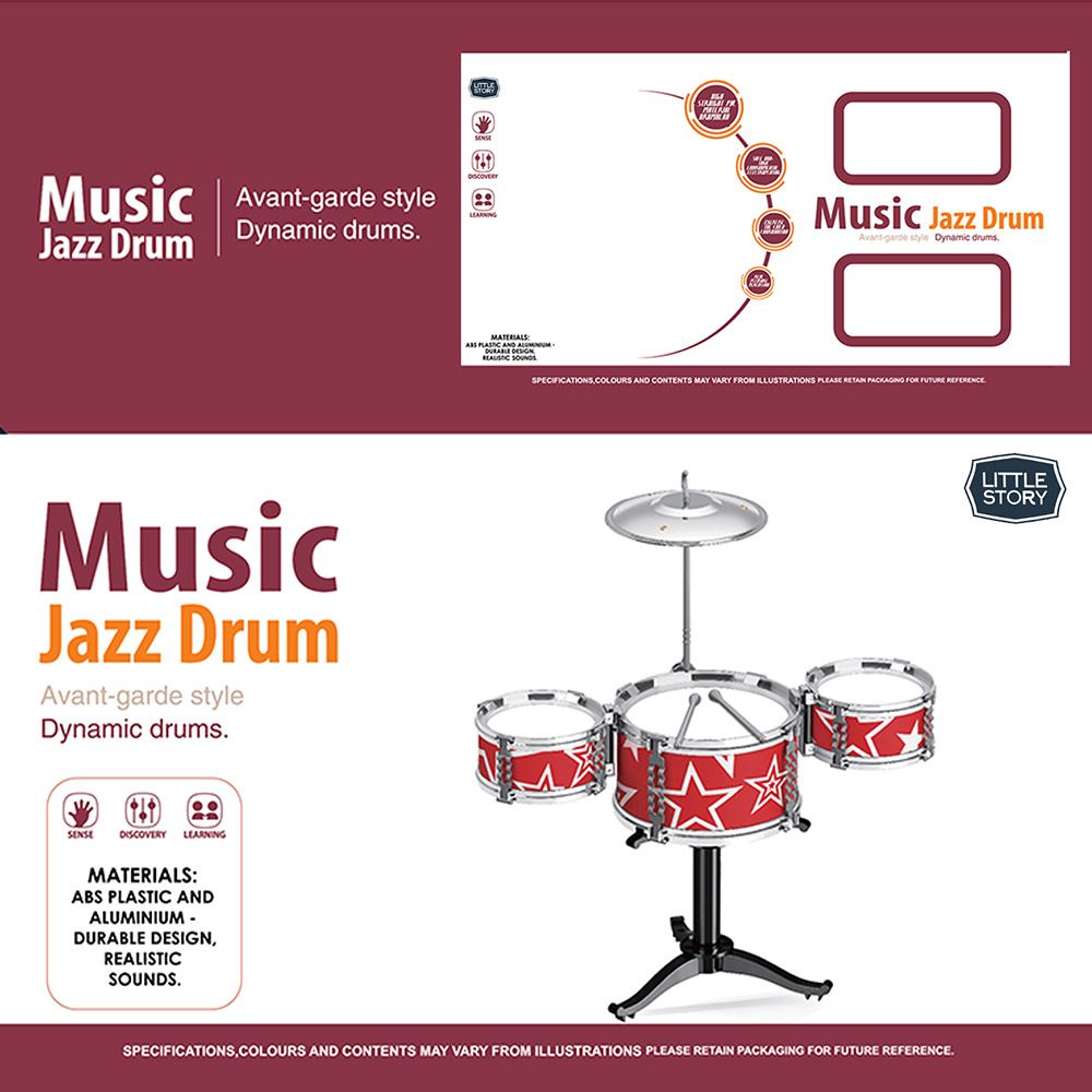 Let's Rock n Roll with Little Story Lids Drum Set Musical Instrument. Kids jazz drum set included 3 drums, 1 cymbal and 2 drumsticks. This kids drum set can help children improve their sense of music while enhancing their attention span and memory at the same time. Since kids can easily break things, this drum set has been made to be strong and sturdy, so that kids can enjoy using it for a long time. The drum set is ABS environmental material, with high quality PVC drum surface, bright color, lovely design and interesting sound effects, can focus children's attention.