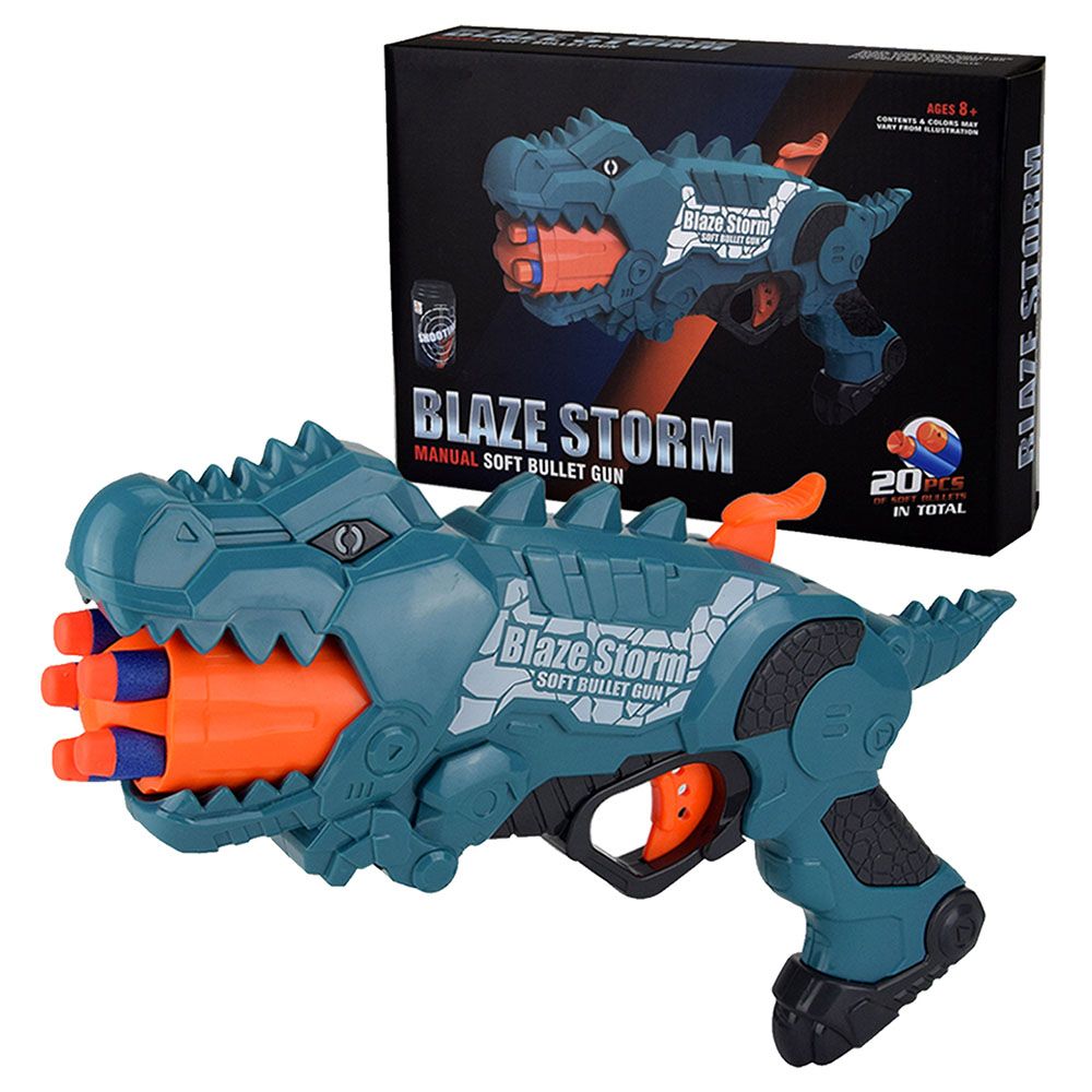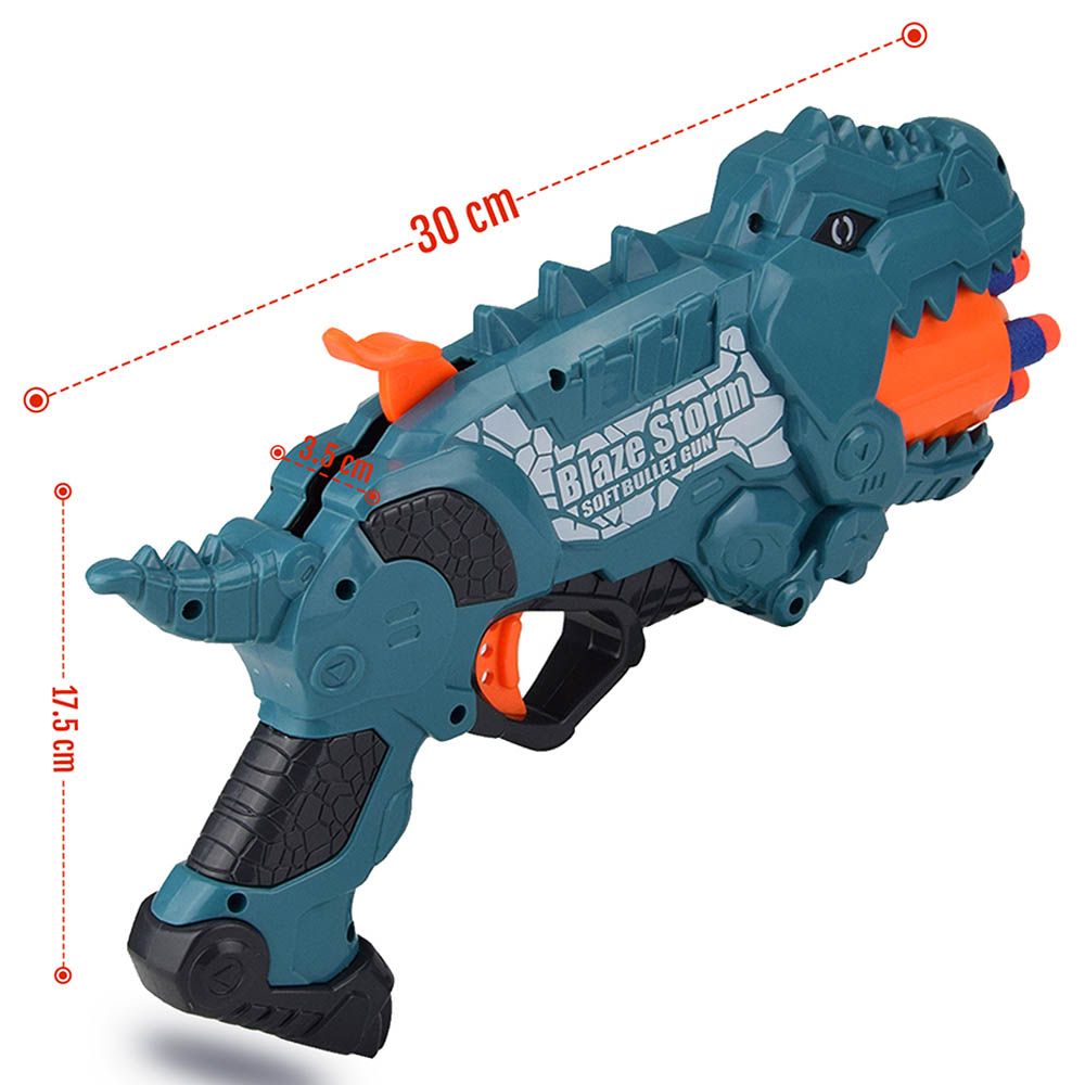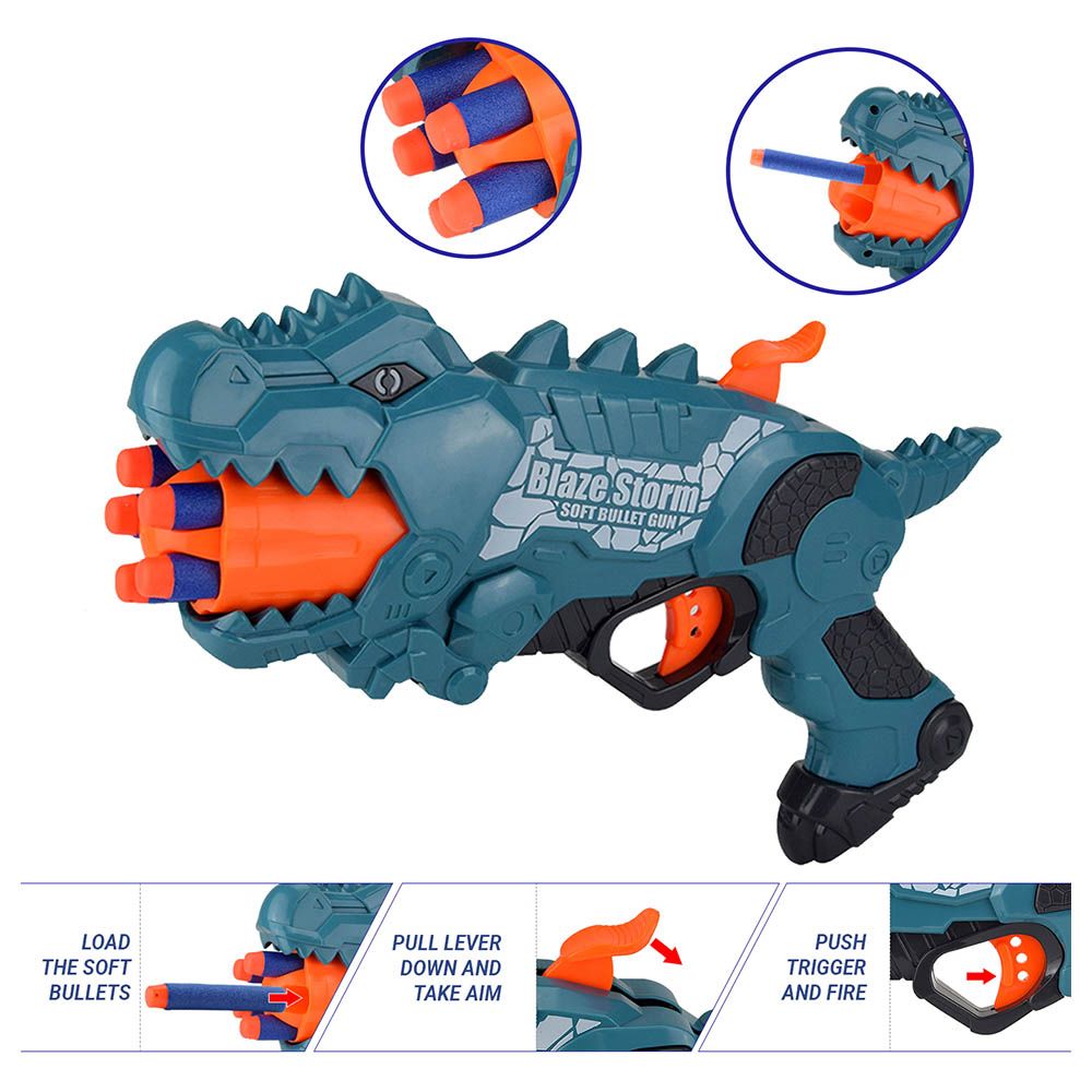 Little story Kids Manual Dinosaur Bullet Gun comes with 20 pcs of soft bullets. Soft Bullet Gun is very easy to operate and it can load up to 5 bullets at same time. Kids will love to fire soft foam bullets and suction darts and hit imaginary targets. It is super exciting and super cool shooting fun for the whole family; right in the cosy indoor suitable for kids Load 5 soft foam bullets and fire away. Great for little hands. Big enough for both kids and even adults.