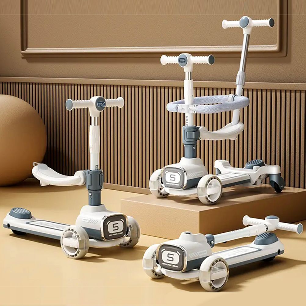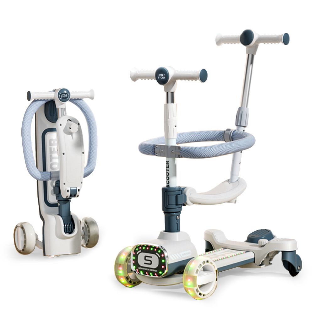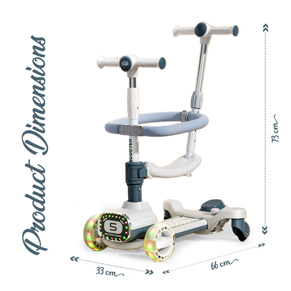 1 x Little Story Multifunctional Kids Scooter with Seat, Fence, and Push Handle