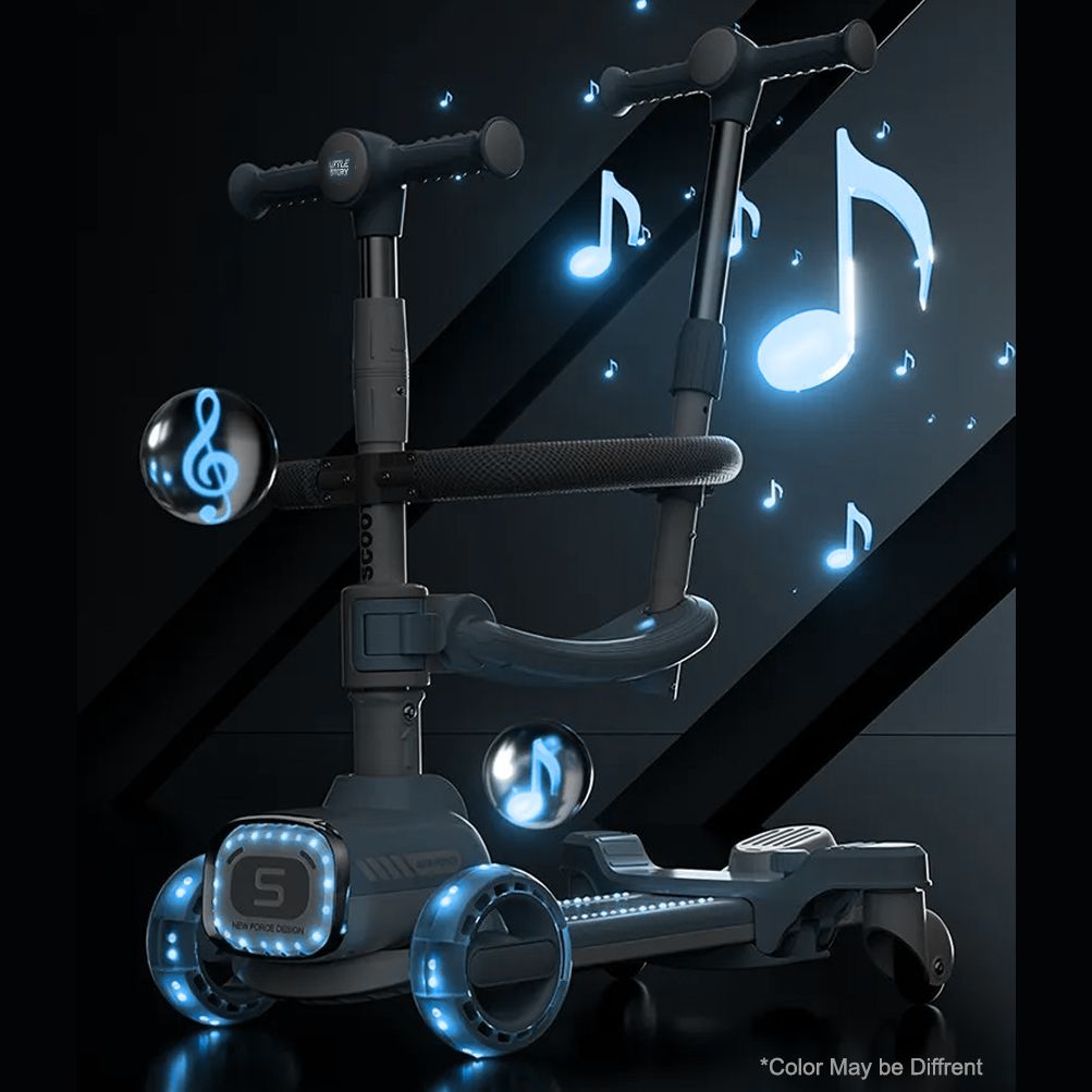 The Little Story Multifunctional Kids Scooter is designed for children aged 18months-8 years, offering an exciting and safe ride. It features vibrant flashing wheels that light up as your child scoots, adding an extra layer of fun to their adventures. The breaks are super convenient when the kids want to stop. The built-in music feature keeps them entertained while riding, and the safety seat with a protective handrail ensures a secure and comfortable ride. The scooter also includes a convenient push handle for parents to guide younger children as they learn to ride.