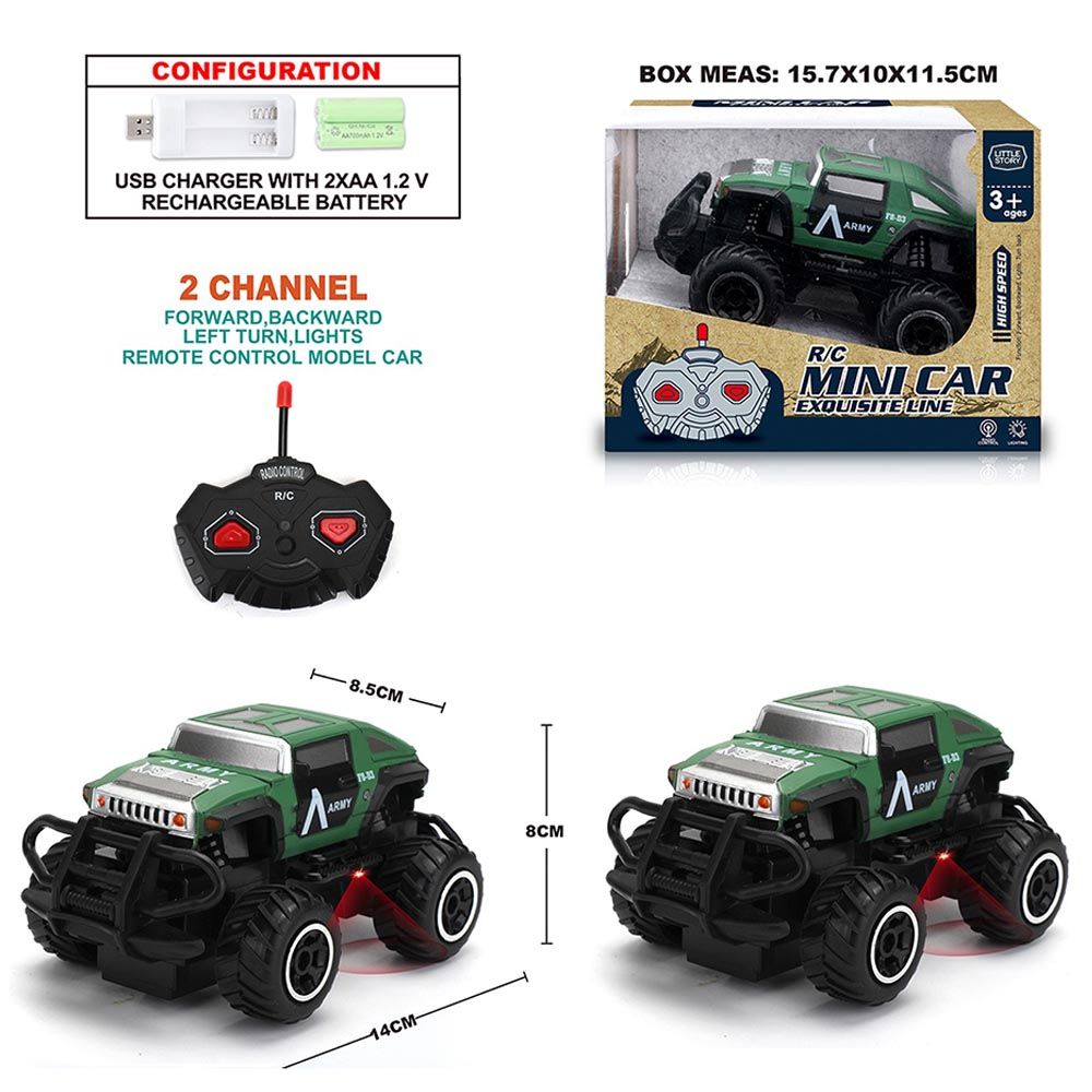 Little Story Kids Toy 2 Channel Military Car comes with Remote Control. The remote control Military car eliminate the vibration of uneven roads and make the driving smoother. Simulated tire gain makes the rubber tires more textured and shockproof. It provides unique design and very realistic and cool look ,perfect for kids. The Military car made of high-quality of durable material, environment friendly durable safe to use. This Military Car is perfect for birthday gift or Christmas stocking present in the holiday season.