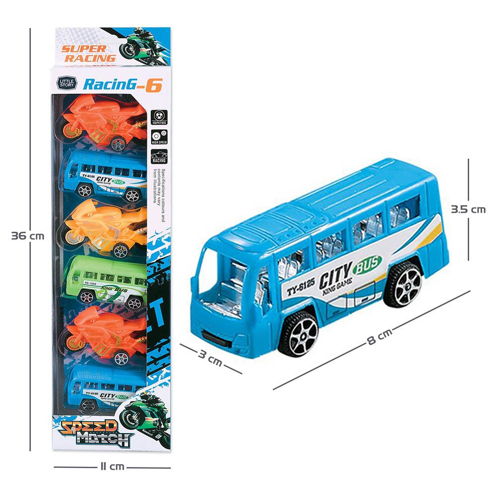 Little Story Kids Toy Pull Back Bus and Motor Car comes with and 6pcs of car set. Cars are made from high quality original ABS, which is durable, non-toxic (EN Grade), BPA Free and eco-friendly. It is designed specially for baby hands, easy to grasp and take. The pull-back-and-go mechanism for toddlers are free wheel and inertia instead of battery for convenience and baby safety. Utilize the principle of small resistance, Just pull cars back, they will go ahead and last for quite a long distance, which attracts child to chase to develop athletic ability.