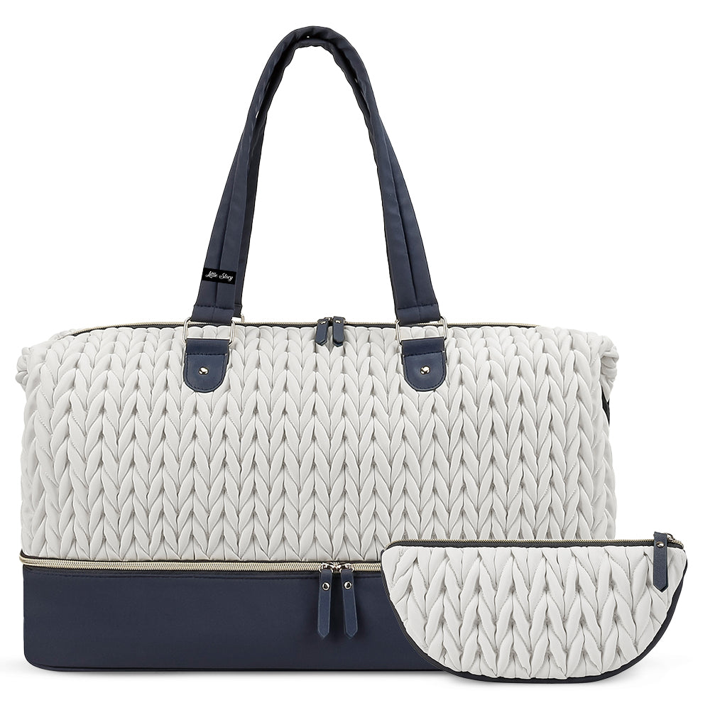 Little Story Luxe Knit Diaper Bag with Clutch - White
