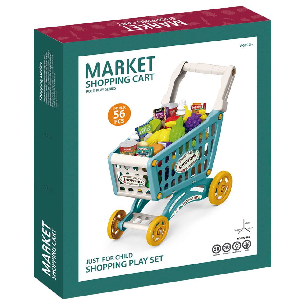 Pretend play for toddlers, 3-6-year-old kids can pretend to go shopping, ask shopkeepers, let your kids familiarize themselves with the names of different foods, colors, and shapes, etc. Children will enJoy hours of developing social skills such as stimulating language development and social interaction. DIY Supermarket Set comes in a Trolley style, easy to organize and carry. Best for your li 'l one as birthday gifts, Christmas gifts, party gifts, Children's Day gifts, and New Year gifts.