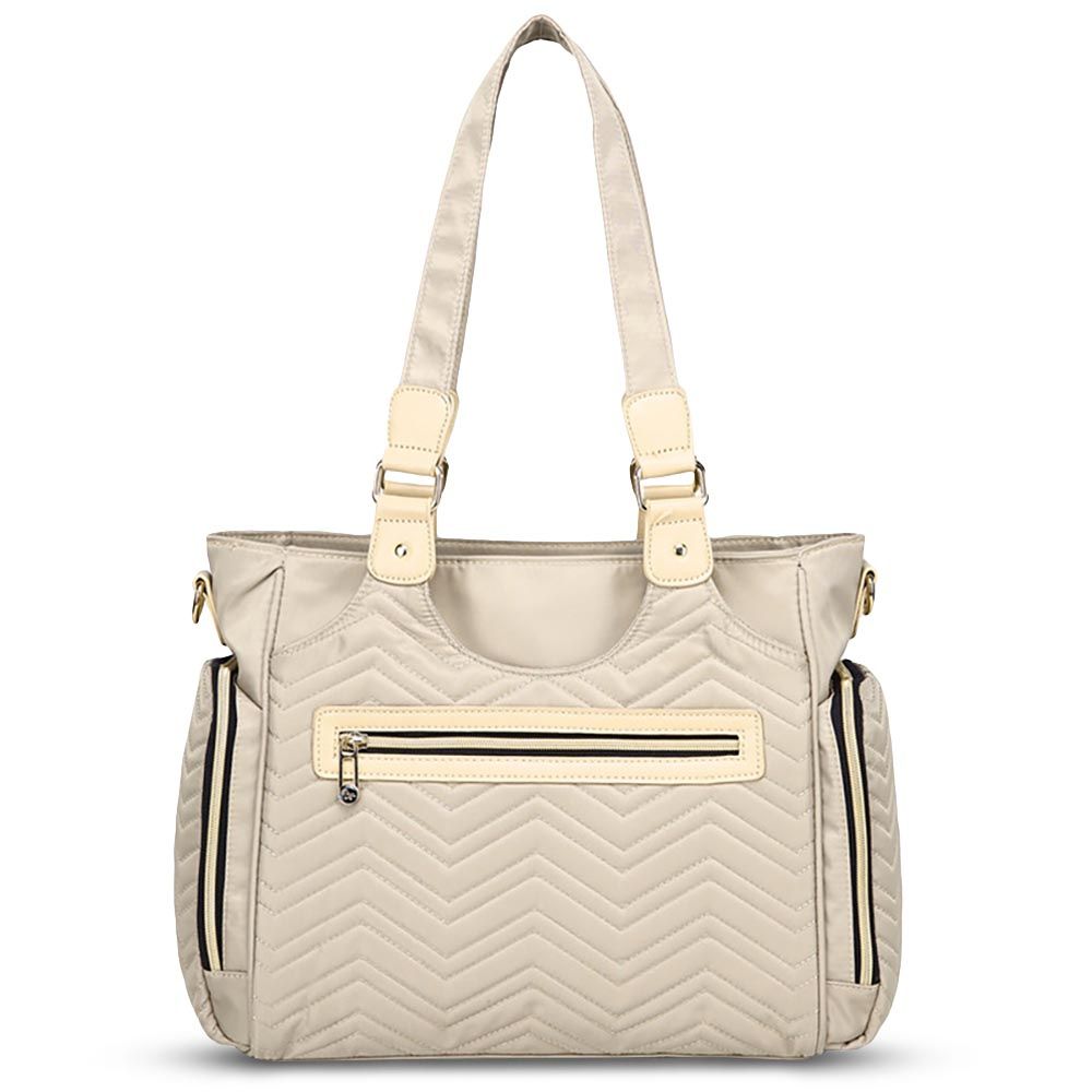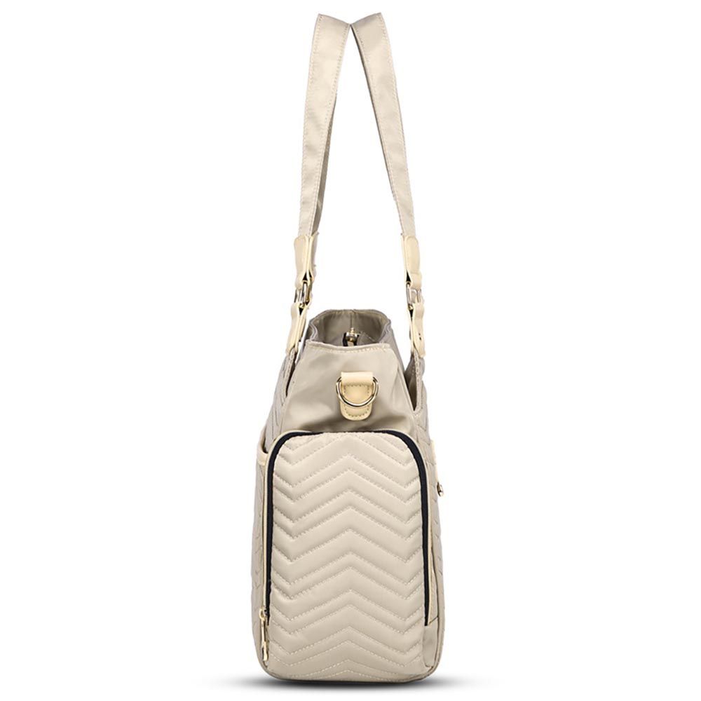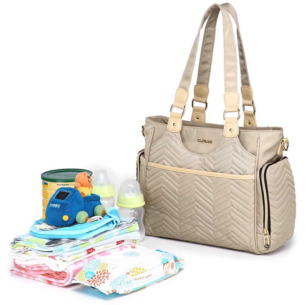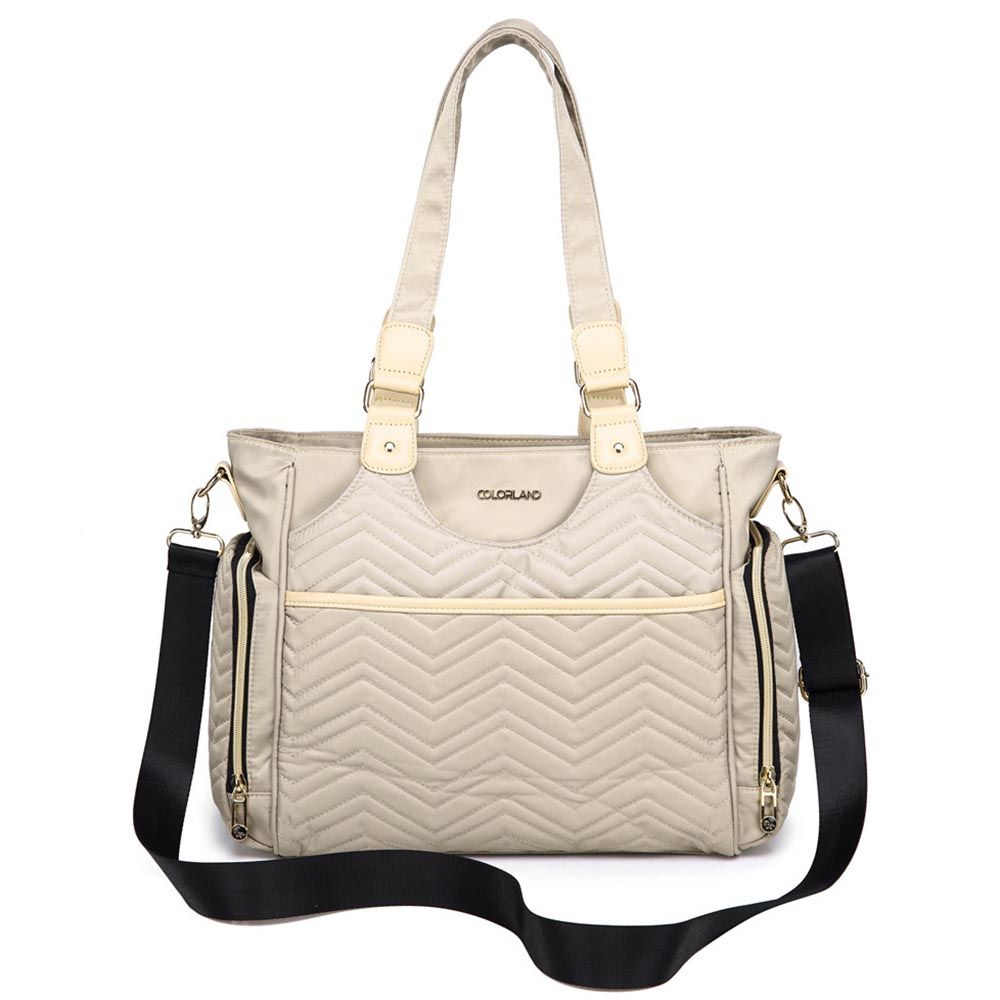 - Durable and Functional: The Large Diaper Bag Tote is crafted with polyester material and interior lining trimmed with easily wipes clean coating.