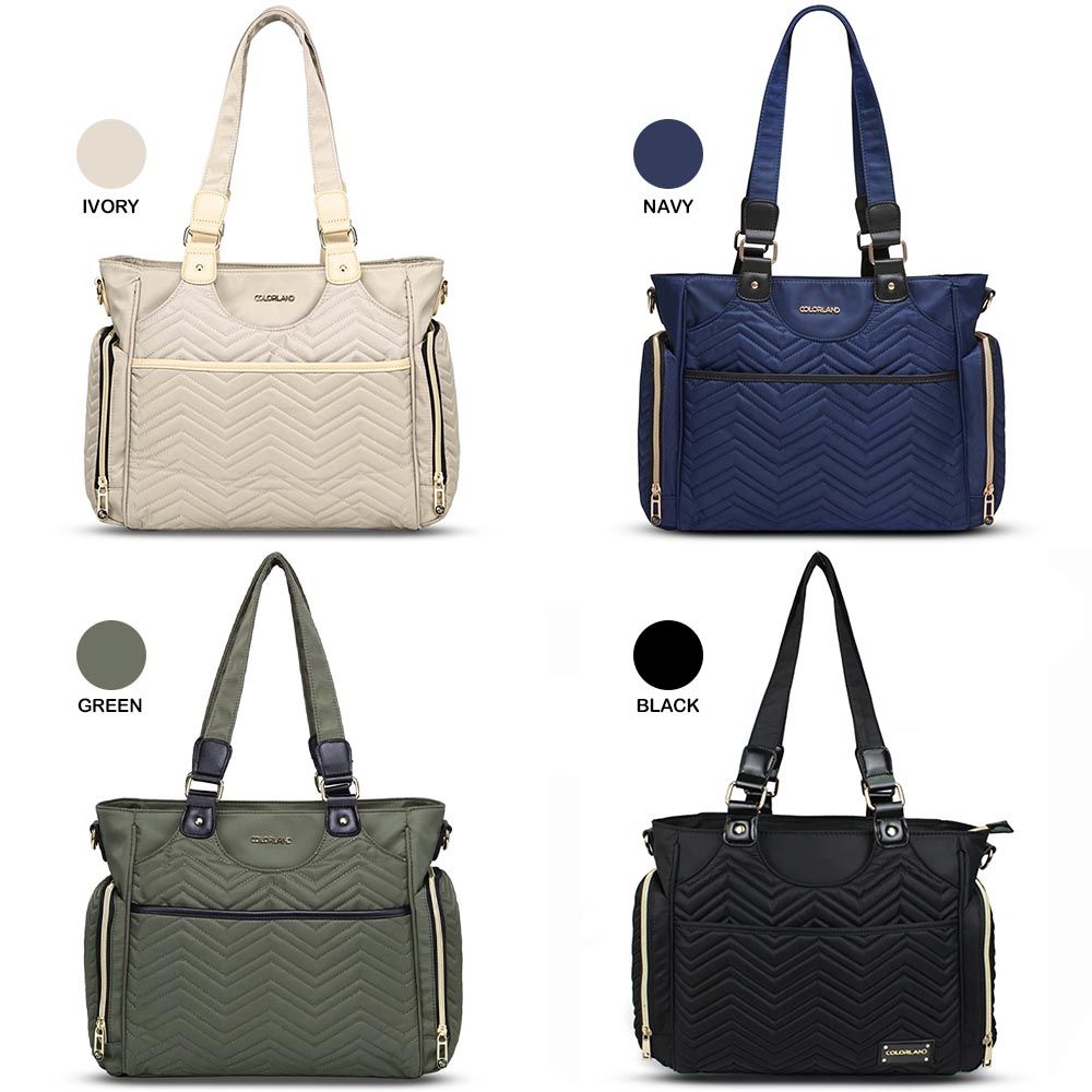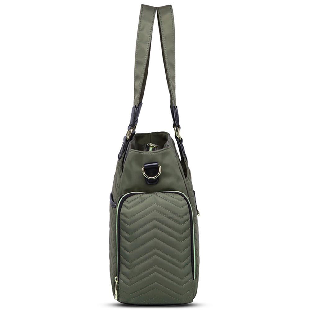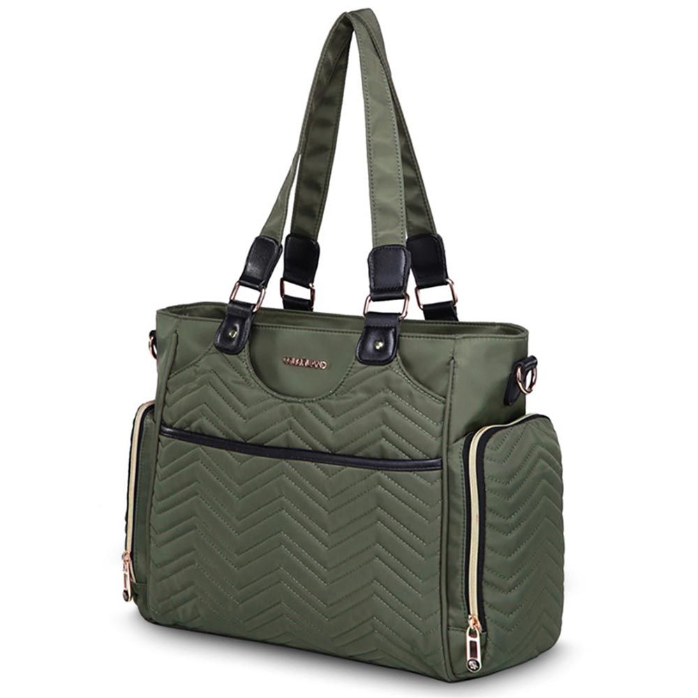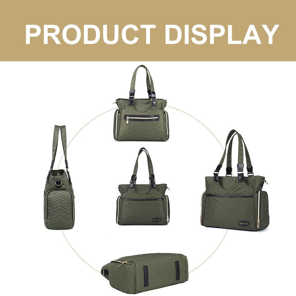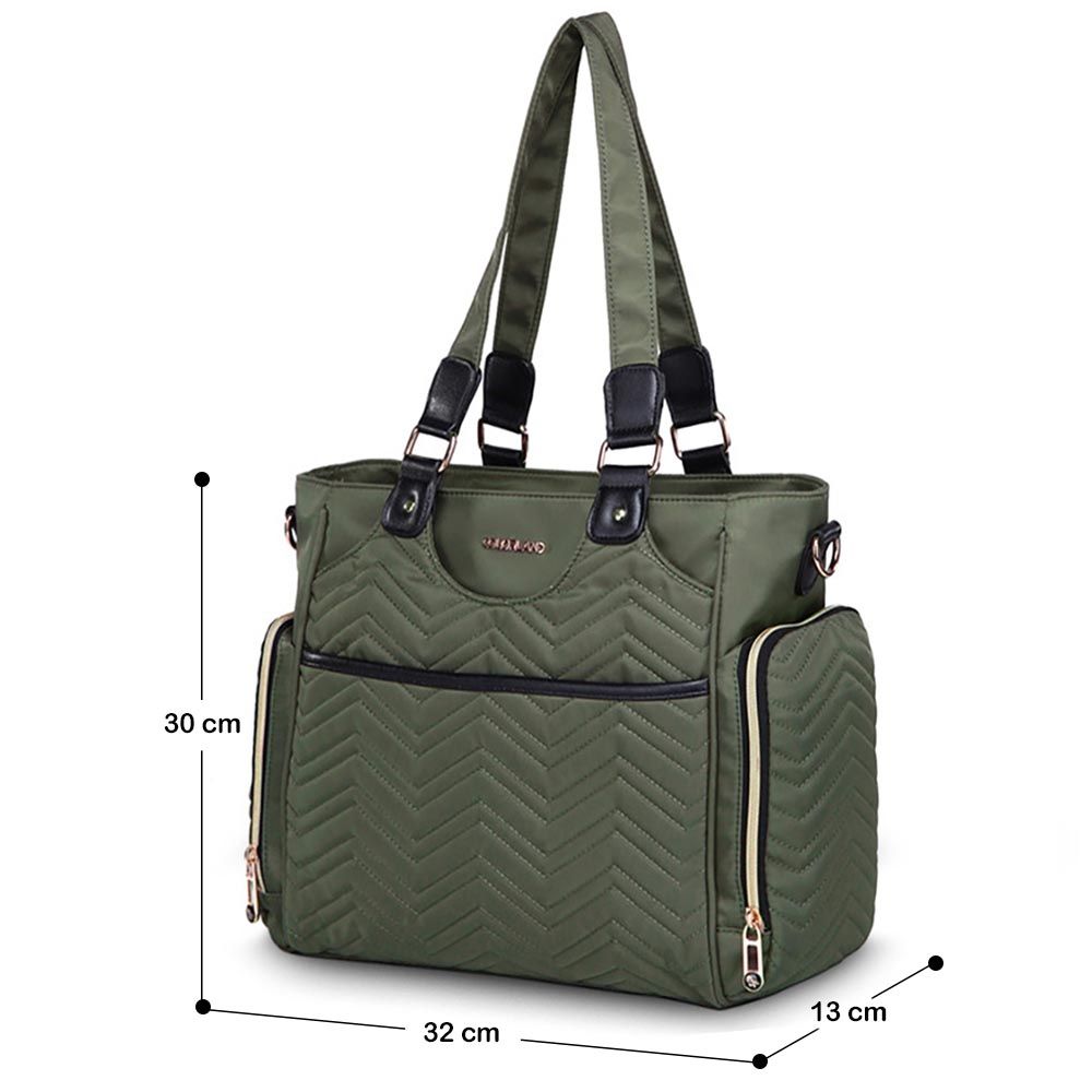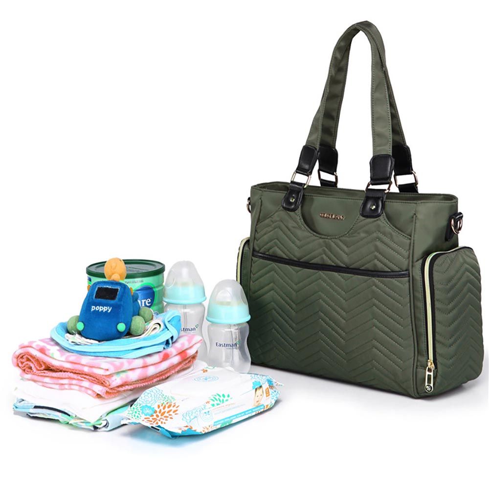 - Durable and Functional: The Large Diaper Bag Tote is crafted with polyester material and interior lining trimmed with easily wipes clean coating.
