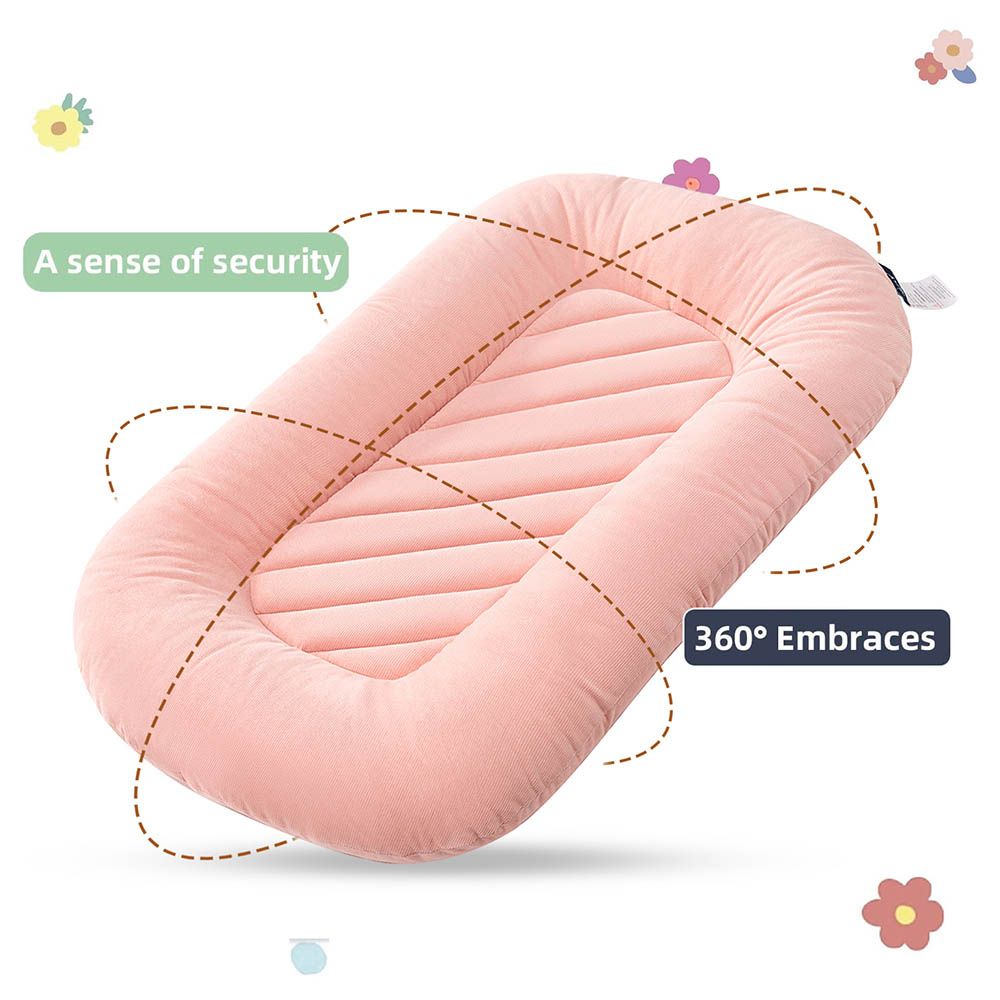 Snuggle up your little one in our cozy baby lounger - where safety and comfort meet. Little Story Portable Baby Lounger Pod is a cozy and comfortable resting place for babies that simulates the feeling of being held in a mother's arms. It provides a secure and snug environment for babies to relax, rest, and play. The soft and plush materials used in the lounger are carefully selected to mimic the warmth and comfort of a mother's embrace, providing a soothing and calming effect on the baby.