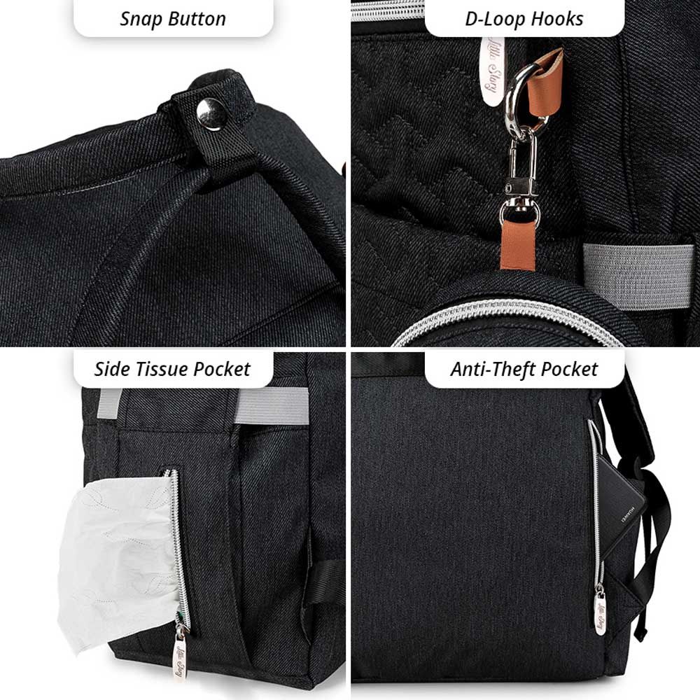 - Wipes Tissue Pocket: Special design on side pockets of our baby diaper bag make it convenient to take a paper napkin or wipes.