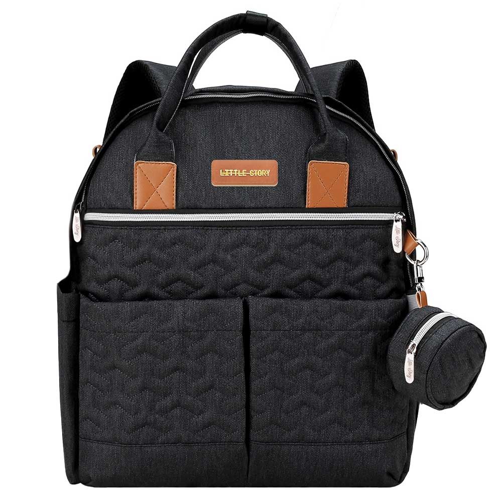 Little Story Quilted Diaper Backpack with Pacifier Pouch and Stroller hooks is a diaper bag which provides both functionality and style. This gorgeous Bag Flaunts Maternity Messenger style and also a Backpack style. Great colors and soft waterproof fabric is the first choice for all mums. All in all 3 compartments with 12 pockets are what a perfect organizer backpack should have! Two side ways pocket to keep tissues handy. , , The two internal pocket has insulated bottle holders to keep the food cool or warm. The front pockets have enough space to keep additional bibs, spoons or soothers. Keep yourself hands free with detachable stroller hooks which comes free with the bag. A Pacifier bag is also included for to keeps your pacifiers holders safe and clean. Perfect for Gifts to new moms, baby showers, kids birthday, Christmas and Halloween.