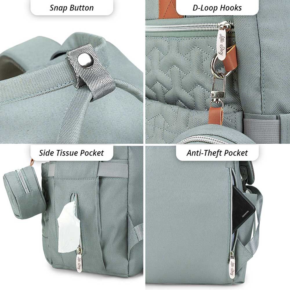 - Wipes Tissue Pocket: Special design on side pockets of our baby diaper bag make it convenient to take a paper napkin or wipes.