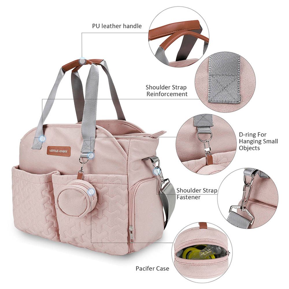 - Extra-wide Opening offers easy access to all baby essentials, also easy to close, comes with a Pacifier bag and detachable shoulder strap