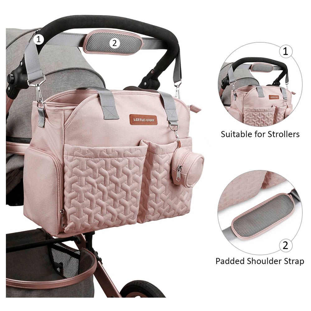 A Little Story Quilted Diaper bag with Pacifier bag and Shoulder Strap is here. We understand your need for a diaper bag which provides both functionality and style. This gorgeous Bag Flaunts Maternity Messenger style.