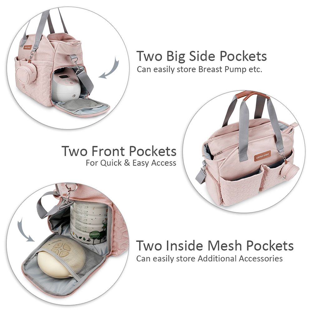 - Wipes Tissue Pocket- Special design on side pockets of our baby diaper bag make it convenient to take a paper napkin or wipes