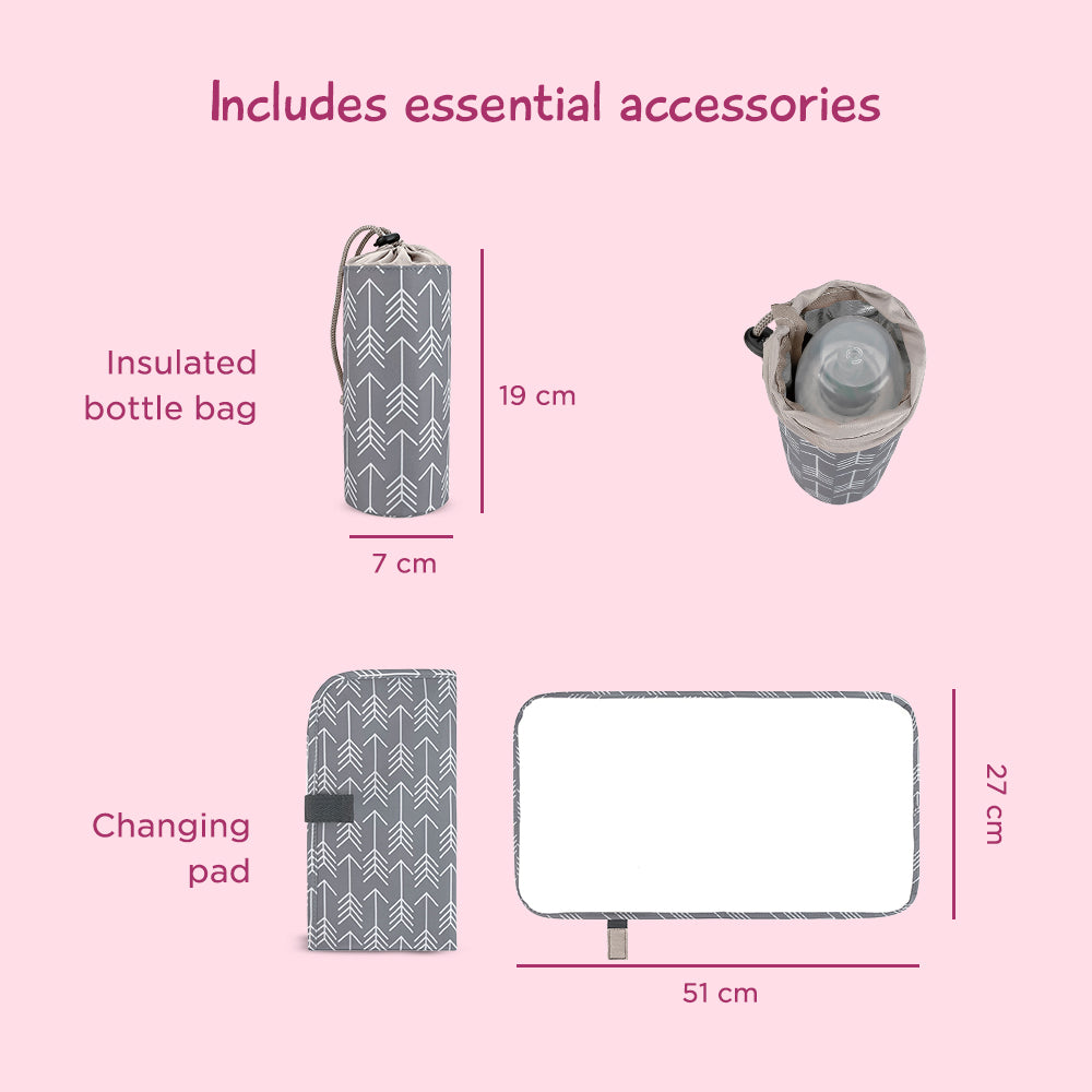 - Extra Convenience – Includes matching insulated Bottle Bag and changing mat for easy feeding and diaper changes on the go.