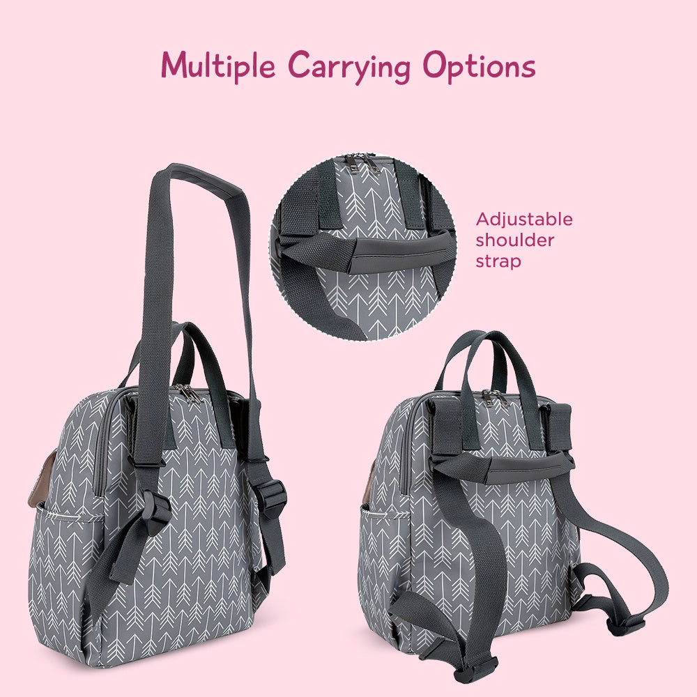 Little Story set of 3 Diaper Backpack with Changing Mat and Bottle Bag - Arrow Grey
