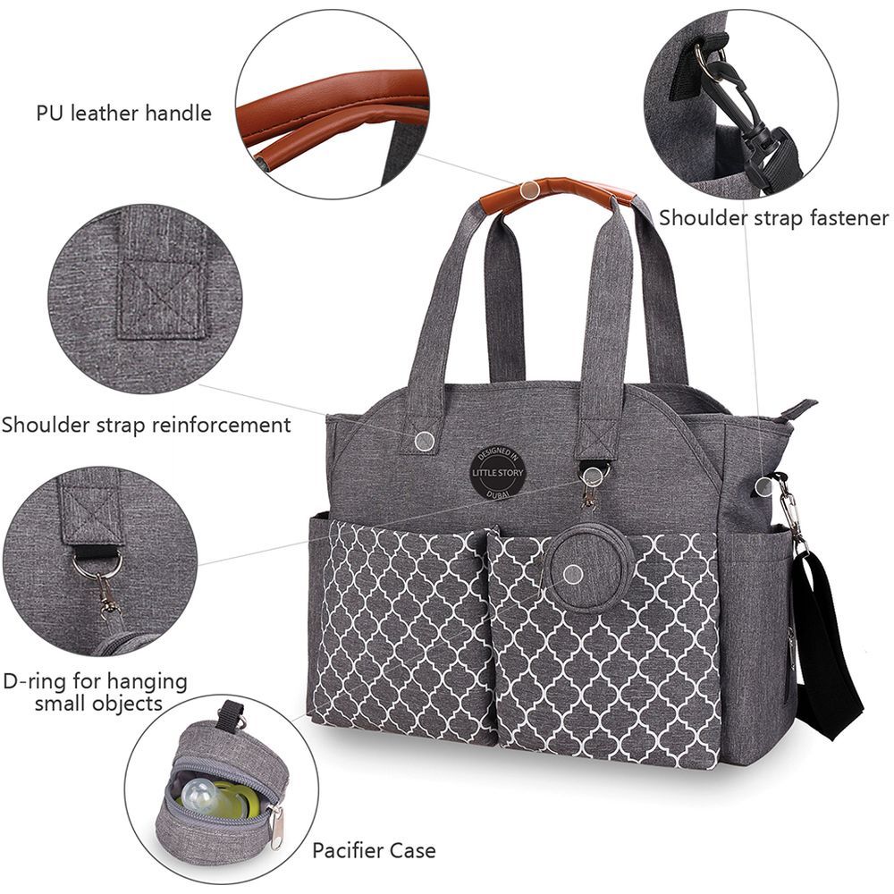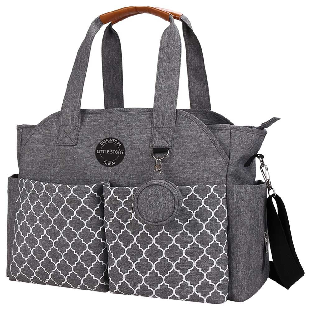 The Signature Style Mommy Diaper Bag is here from Little Story. This gorgeous Bag Flaunts Maternity Messenger style with lovely colors. All in all 12 pockets are what a perfect Nappy organizer backpack should have! Two side ways pocket to keep tissues and water bottle handy. A small Bib Pouch to keep the Baby Pacifier safe and separate. The front pockets have enough space to keep additional bibs, spoons or soothers. Keep yourself hands free with detachable stroller hooks which comes free with the bag. A diaper changing mat is also included for easy nappy change. Adjustable messenger side strap is comfortable and stylish for the Mums.