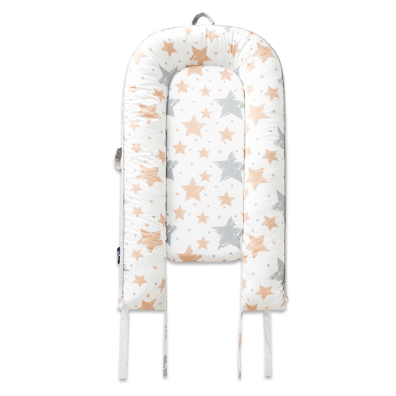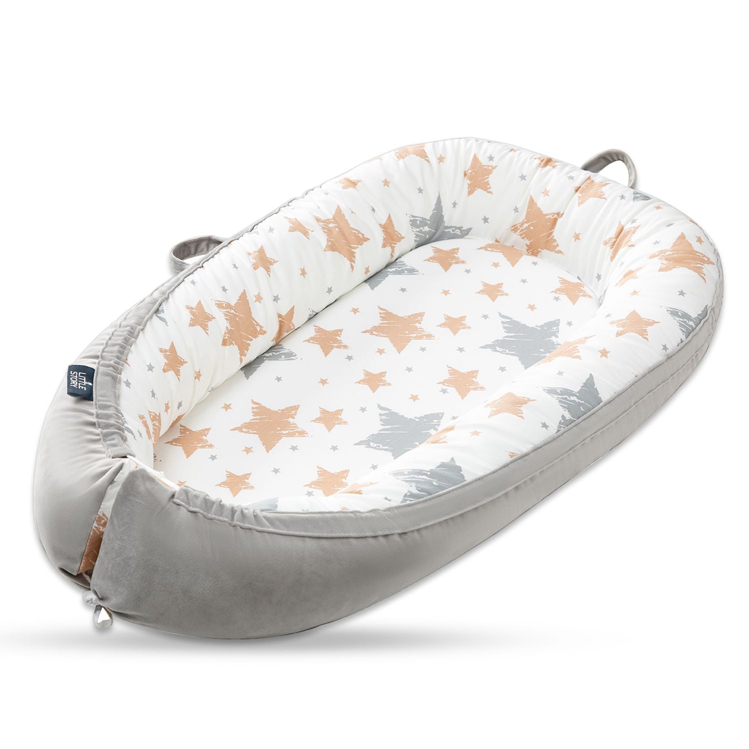 Little Story Soft Breathable fiberfill Newborn Lounger Bed paired with Little Story Baby Nursing and Feeding Pillow, Combo is made of 100% Cotton Fabric Cover for Pillow, Tube and Pad & fiberfill, with extra side padding, 4cm mattress comes with infinity hidden Zipper. One side is print pattern, and the other side is solid colour so you can switch between the two sides. The Lounger & Feeding Pillow not only help propping babies to a more ergonomic position for comfortable feedings, but also transitions to support them as they grow offering the perfect spot for tummy time, playing, sitting, or just discovering little fingers and toes. Adjustable, simply loosen the cord at the end of the bumpers to make the size larger. The ends of the bumpers can be fully opened. Babies snuggle nest sleeper is 90cm long and 50cm wide.