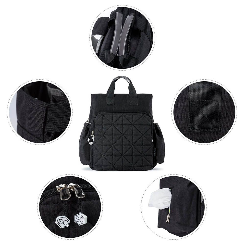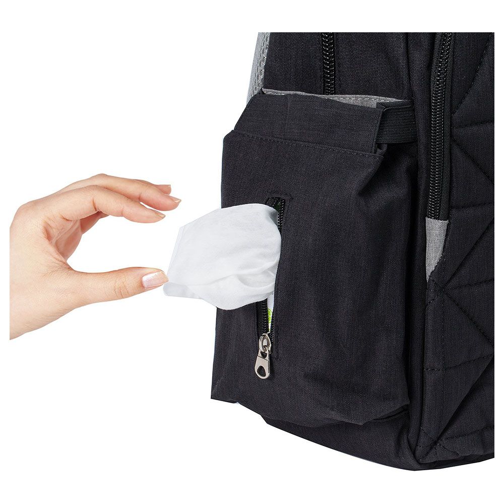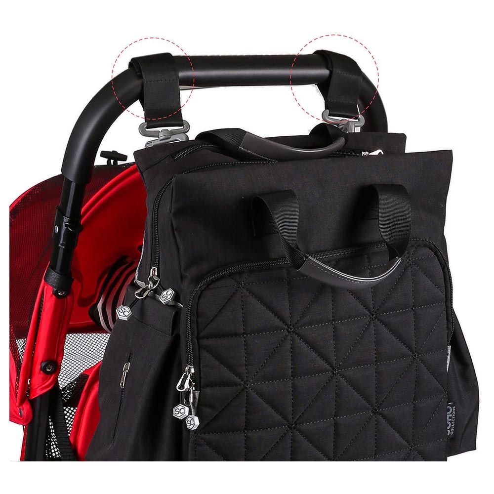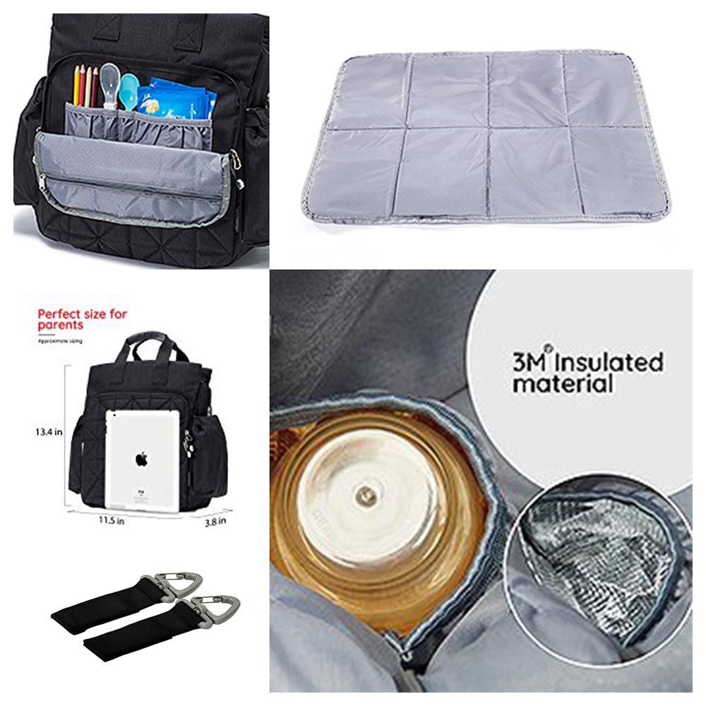 - Pack includes: 1 Bag, 1 Changing Pad, 2 Stroller Straps