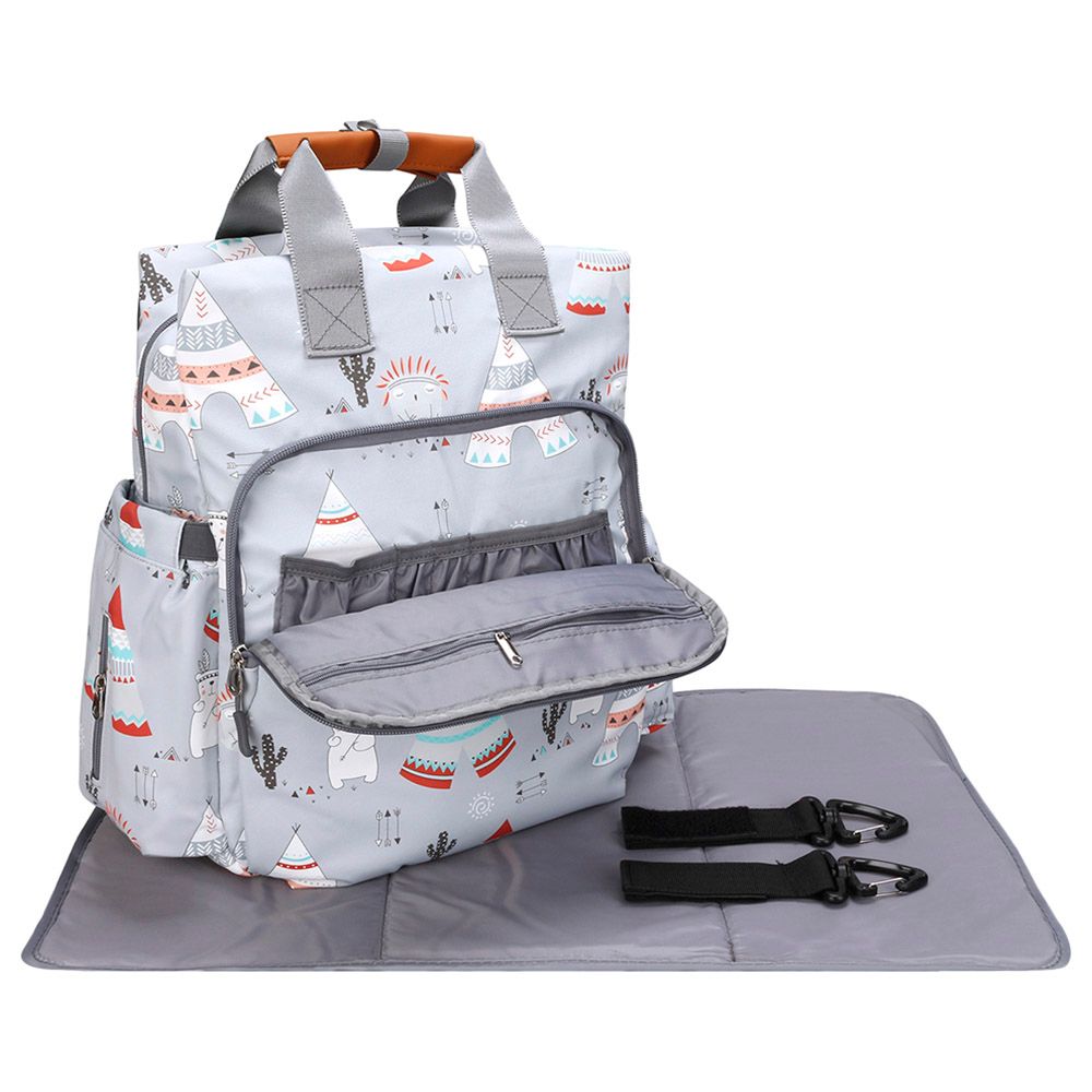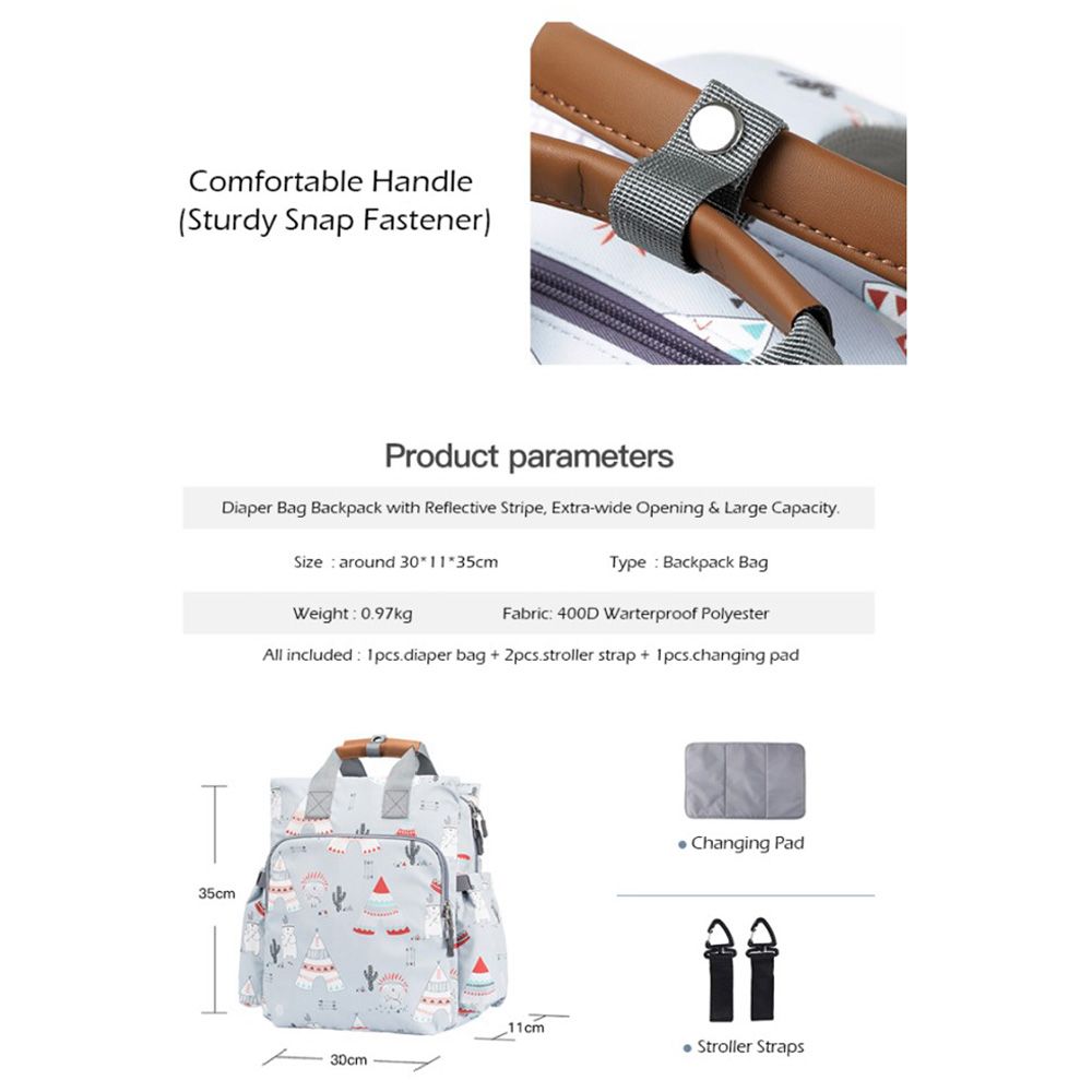 - Pack includes: 1 Bag, 1 Changing Pad, 2 Stroller Straps
