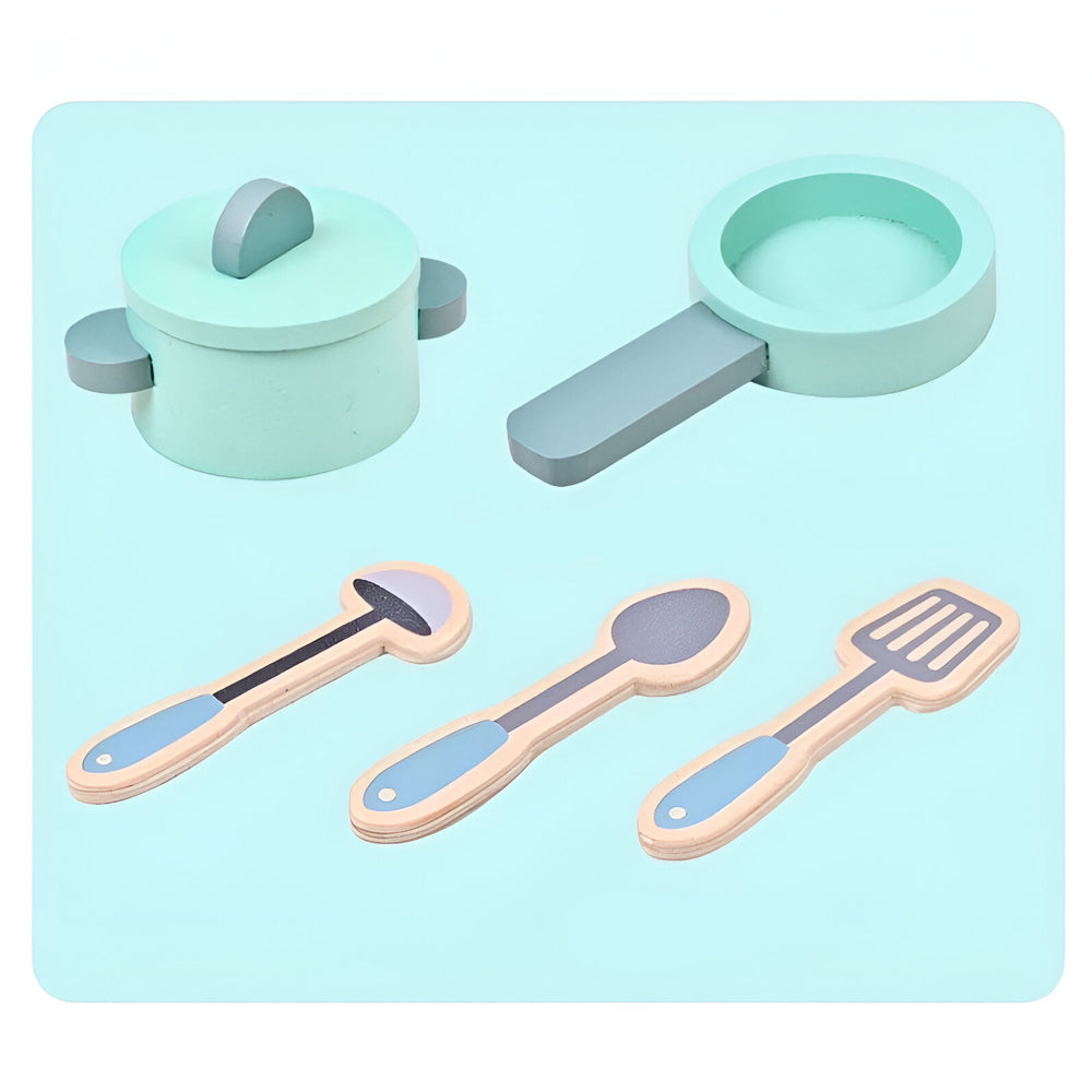 Crafted from high-quality MDF and safe plastic, this kitchen set is built to last with a sturdy structure and finely polished finish. Its rounded corners ensure safety, while the realistic design with rich accessories creates a life-like cooking experience. The light blue color adds a modern, stylish touch, making it a charming addition to any playroom.