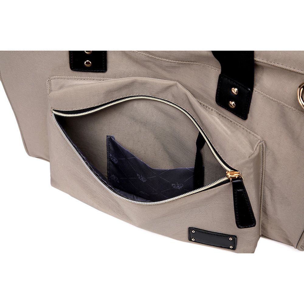 - Features waterand dirt-resistant fabric with wipe-clean interior lining.