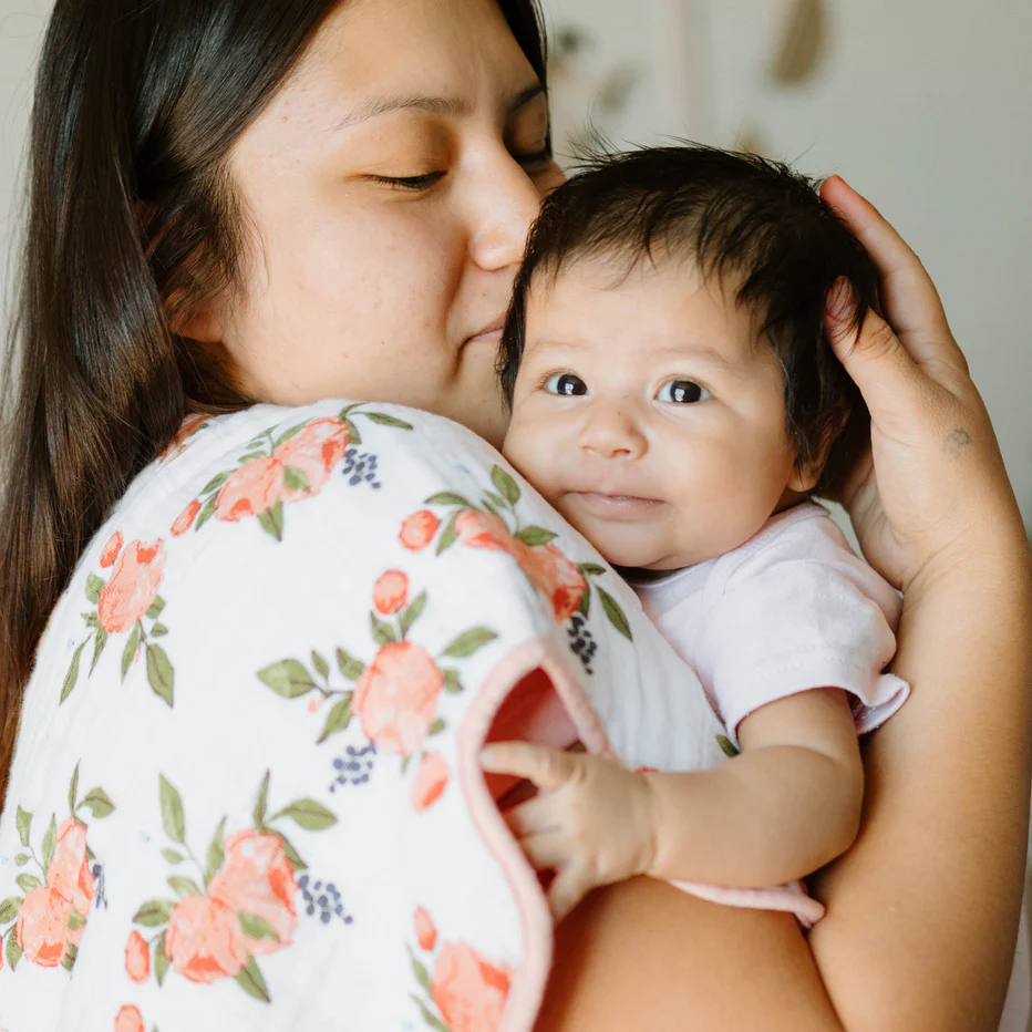 There's no use crying over spilled milk. With 4 absorbent layers of cotton muslin and an innovative shape, Little Unicorn's burp cloth keeps you clean and dry while baby's snuggled tight.