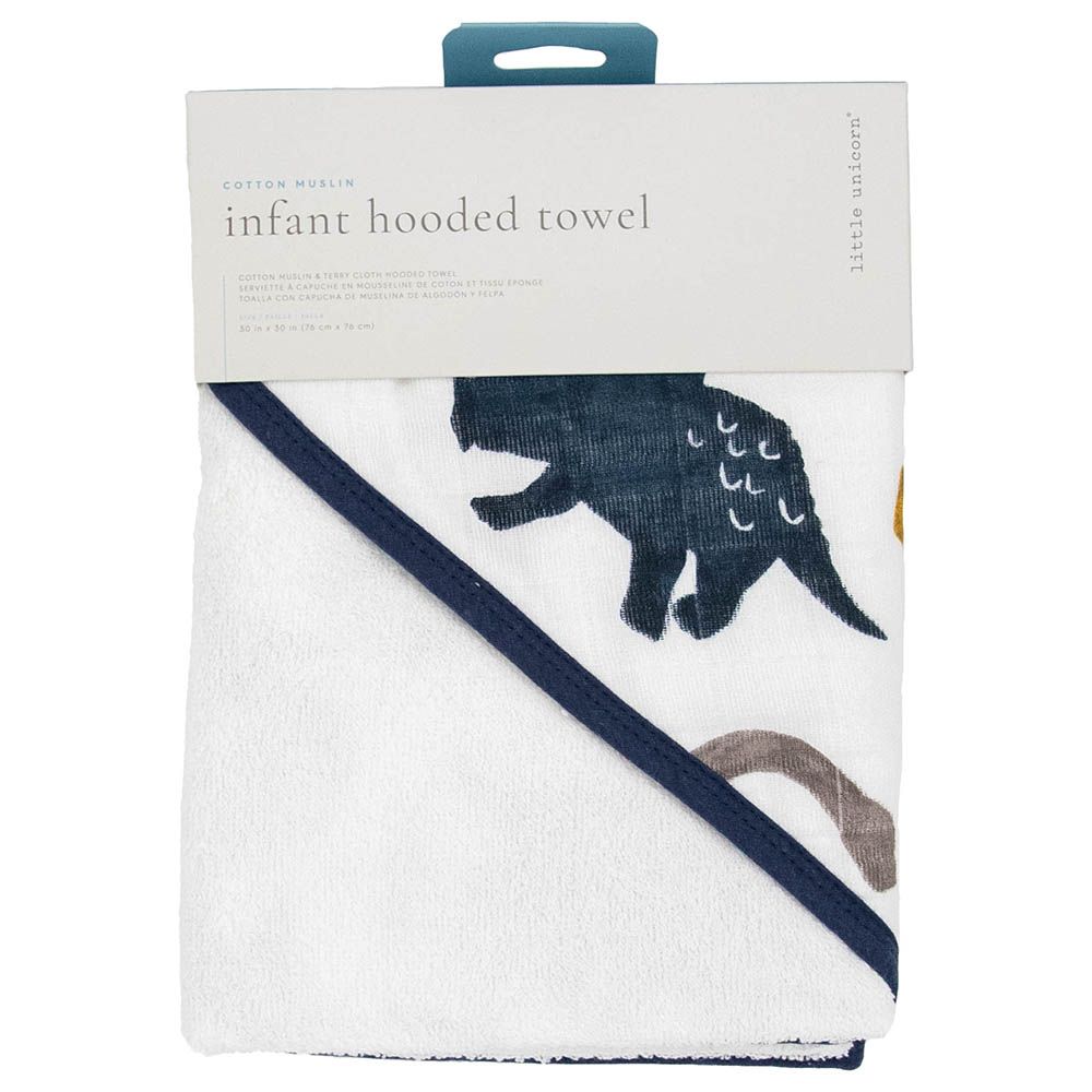 Splash into bath time with a plush and absorbent hooded towel. Featuring a cozy hood the hooded towel is crafted with printed muslin on the outside and ultra-soft terry cloth on the inside.