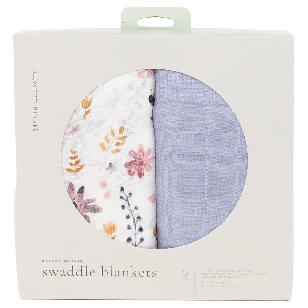 Our softest swaddles, in two hand-painted prints! Silky soft to the touch, our deluxe swaddles are lightweight and breathable while being gentle on baby's skin - ideal for swaddling, nursing, cuddling and more. Care: Wash before use. Machine wash cold with like colors. Wash with like items. Use only non-chlorine bleach when needed. Tumble dry on low heat. Do not iron.