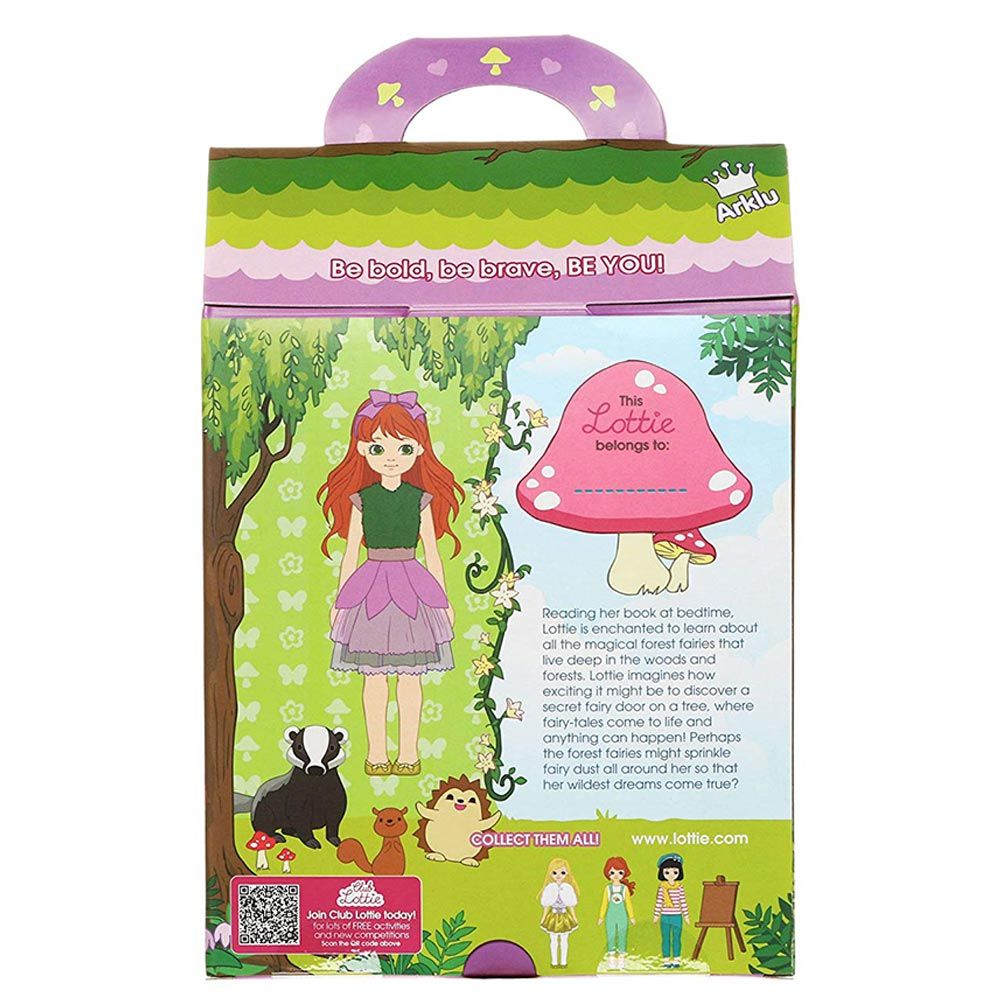 Lottie Forest Friend is a doll that inspires imagination and a love for nature. Tgreen and lilac fairy-inspired costume comprising of a velvet-style bodice and petal tutu skirt. A cute bow hairband and sparkly gold ballet flats complete the look. The doll encourages children to explore and learn about the environment, with a focus on forest animals and fairy tales. Itƒ??s a great way to encourage outdoor play and imaginative storytelling.