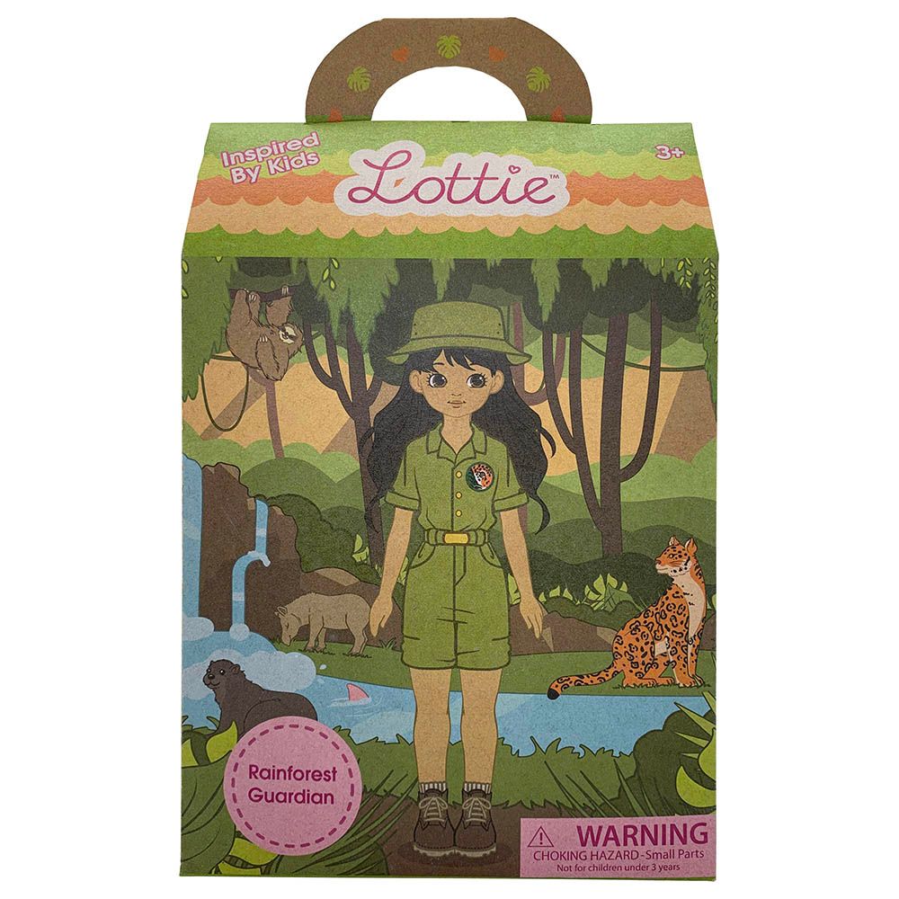 The Amazon rainforest is home to many special plants and animals, and their habitats are in danger of disappearing. With the help of her friends at the Rainforest Trust, Lottie is committed to teaching kids all about climate change and the endangered plants and animals of the Amazon. Sheƒ??s ready to explore the rainforest in a green romper dress and brown boots, and she carries a handy magnifying glass and binoculars. This set also includes ten collectible cards with fun animal facts!