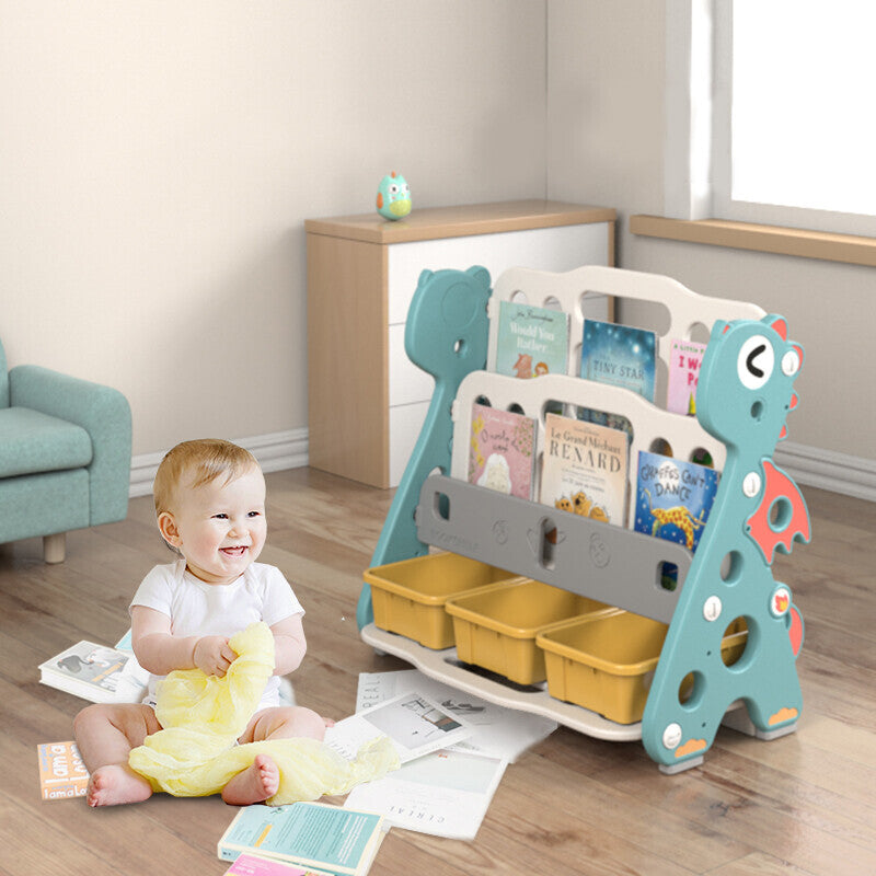 Keep piles of books off the floor! This open shelving book organizer, from Lovely Baby, is easy to assemble. It makes it easy for kids to identify and grab books from. It promotes organizational skills, reading skills, and cleanliness.