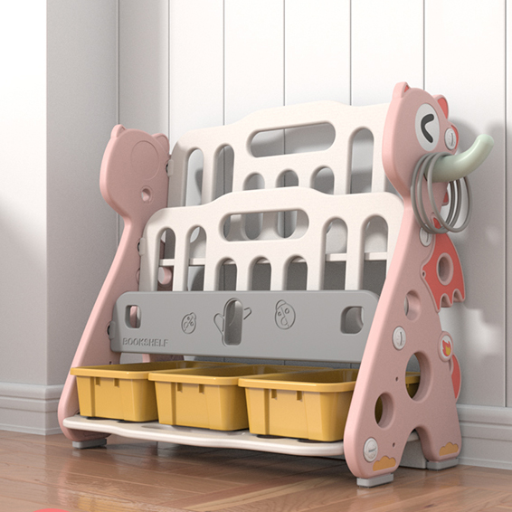 Keep piles of books off the floor! This open shelving book organizer, from Lovely Baby, is easy to assemble. It makes it easy for kids to identify and grab books from. This shelf also comes with storage tubs on the bottom shelve to easily store toys, making it the perfect combo. It promotes organizational skills, reading skills, and cleanliness.