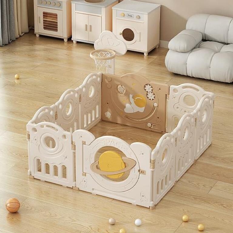 The beautiful Lovely Baby Kids Space Playpen is perfect to give your child a pleasant and engaging environment while ensuring safety with a secure locking mechanism. It includes fun games such as Basketball Hoop and Busyboard to offer more play options to your little one. The Playpen is simple to put together and take apart, making it simple to travel or store.
