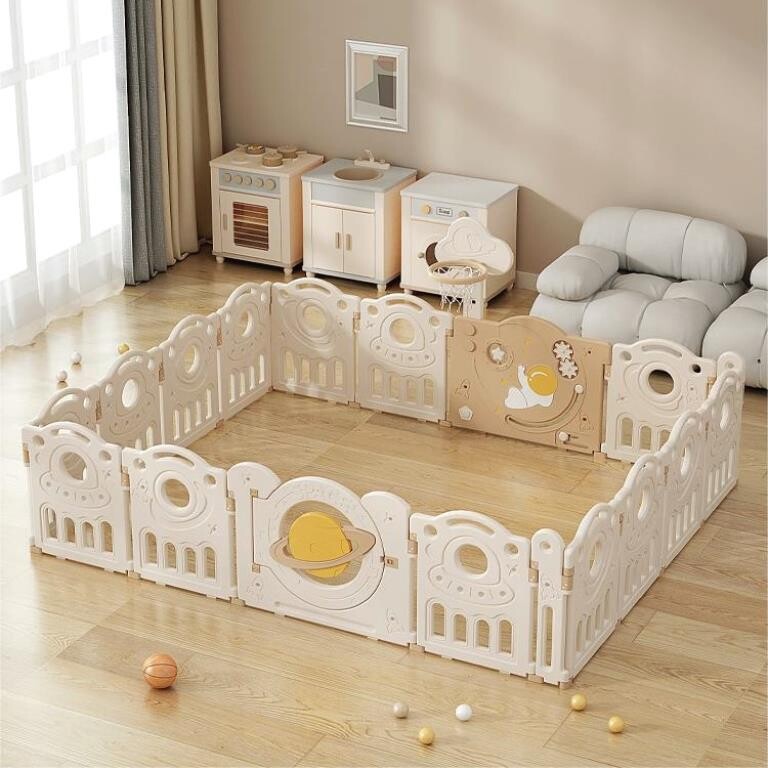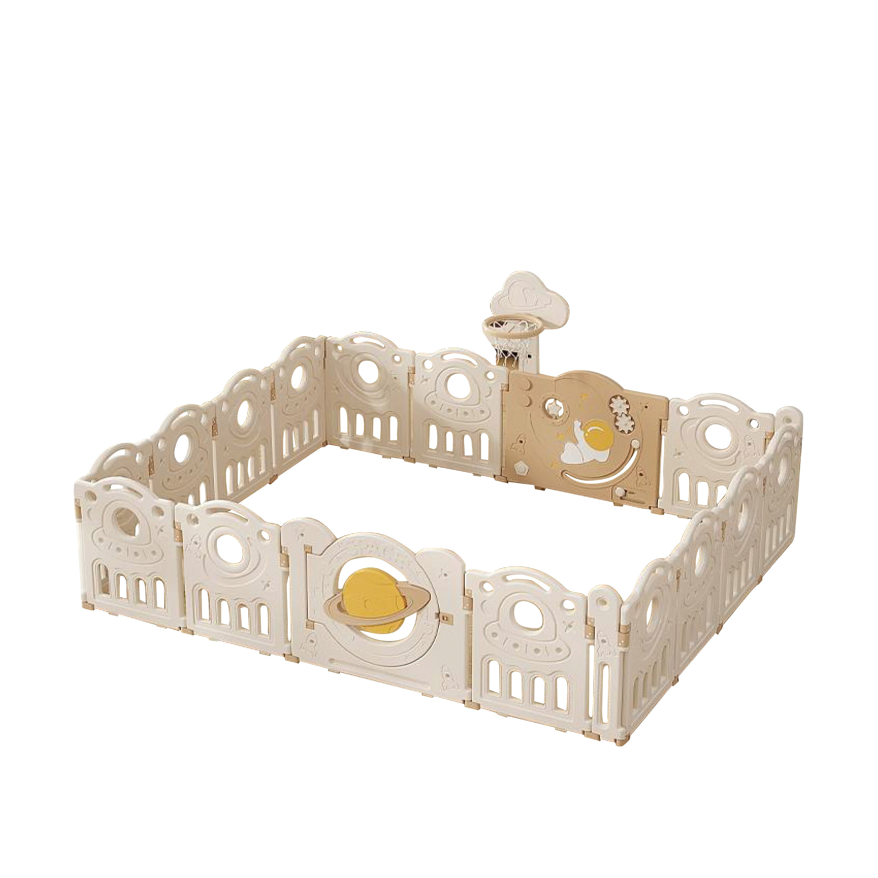 The beautiful Lovely Baby Kids Space Playpen is perfect to give your child a pleasant and engaging environment while ensuring safety with a secure locking mechanism. It includes fun games such as Basketball Hoop and Busyboard to offer more play options to your little one. The Playpen is simple to put together and take apart, making it simple to travel or store.