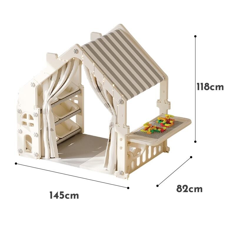 - Introducing the Kids Tent House with Storage & Table: a vibrant and versatile play area designed to inspire creativity and offer hours of fun. This multifunctional tent boasts a spacious interior ideal for play, reading, or naps, and includes built-in storage baskets and a handy table for activities. Crafted for durability, it provides a cozy, organized space for children to explore, learn, and play.