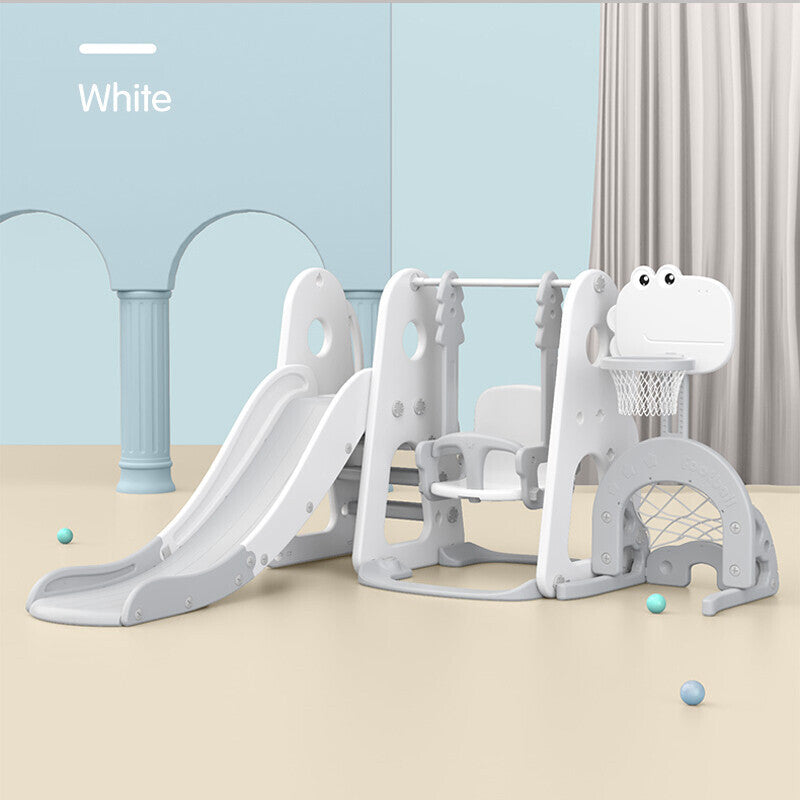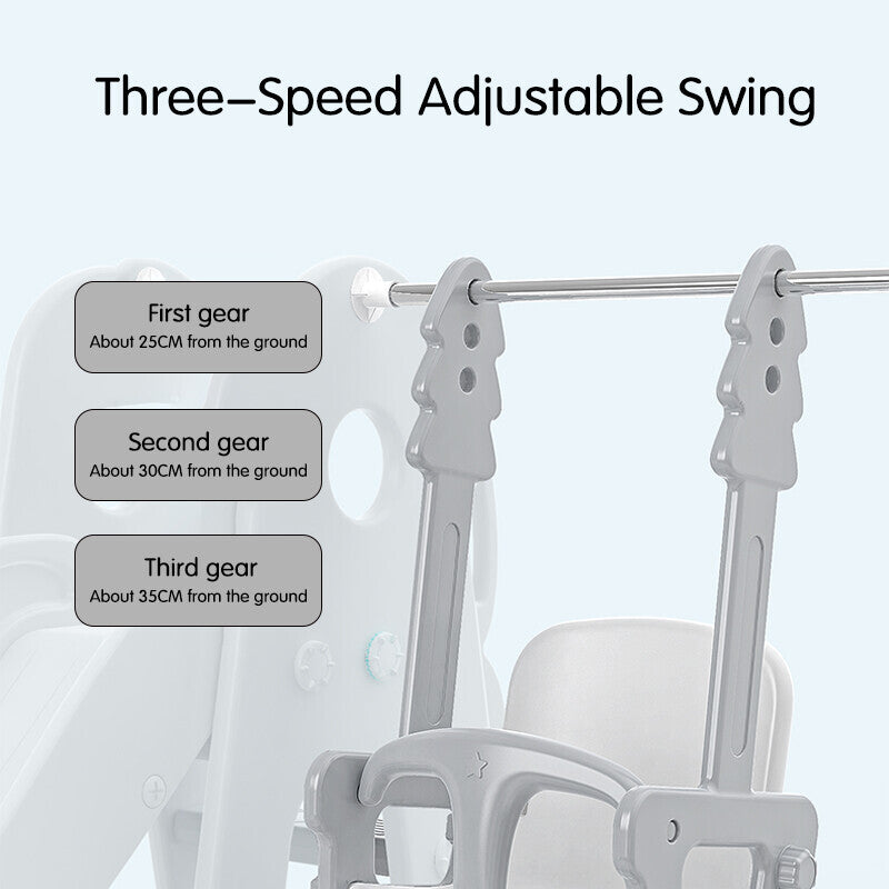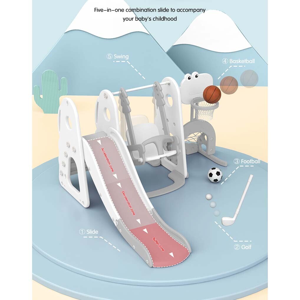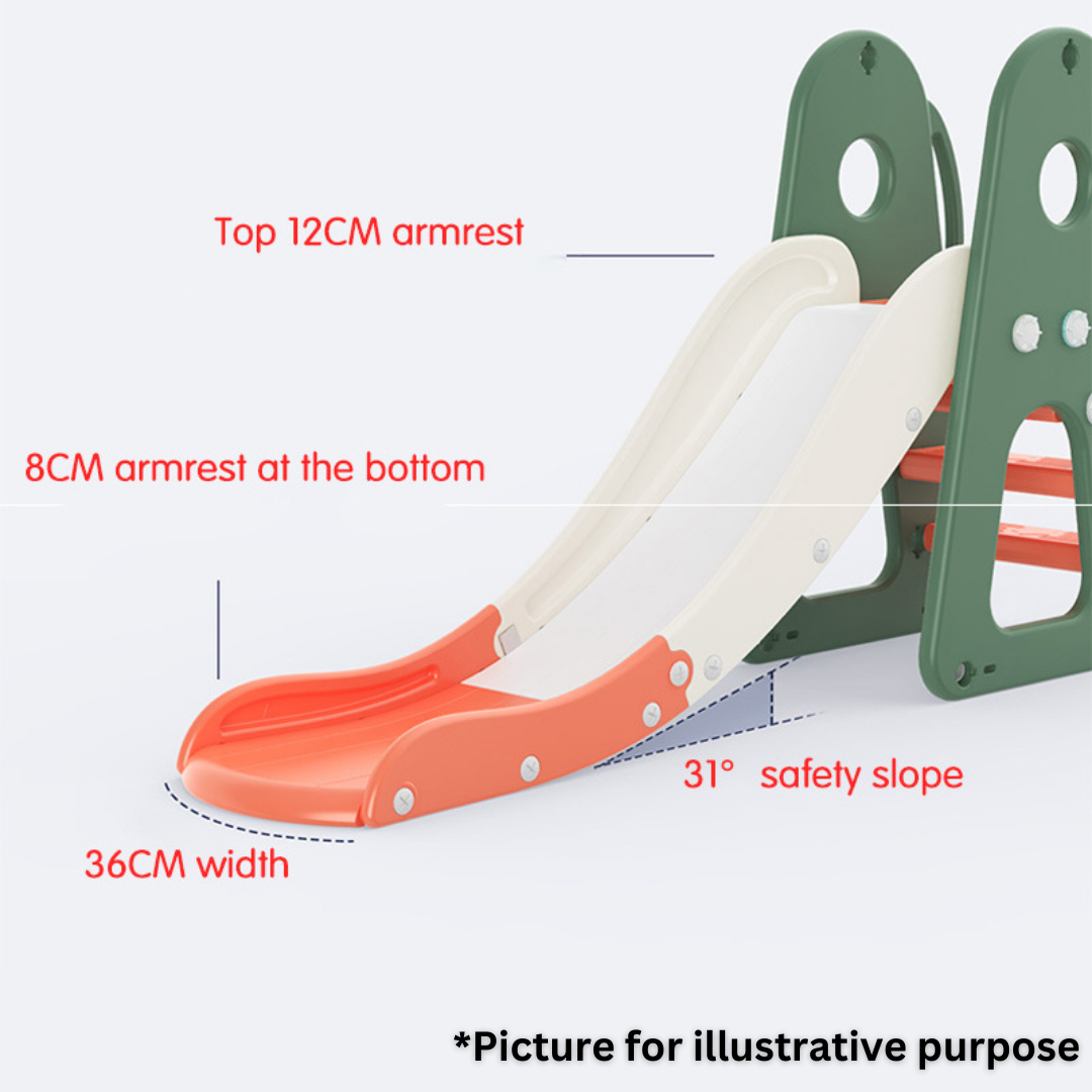 This Lovely Baby slide and swing set doubles the fun and keeps your little one busy with hours of creative play, encouraging imaginative skills. This fun slide also includes a basket ball hoop, a football goal frame and a hockey stock to add even more fun for your little one. The sturdy and stable structure gives it a strong load-bearing capacity and allows for an ultimate and fun-packed playing experience made of high-quality and durable material for longevity.