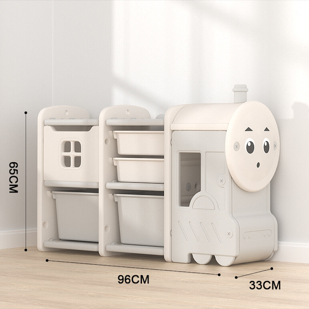 The Lovely Baby Train Storage Rack is a charming and practical piece of furniture designed for young children's bedrooms or playrooms. The storage rack is fashioned in the shape of a cute locomotive that will appeal to kids' imagination. Made from high-quality materials, this storage rack is sturdy and durable, ensuring that it can withstand the wear and tear of regular use by active kids. It comes with multiple storage boxes that fit perfectly into the wagon sections of the train, providing ample space for children to store and organise their toys, books, and other belongings.