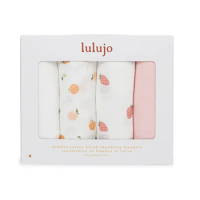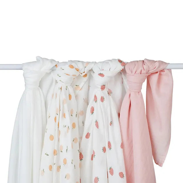 Lulujo 4-Pack Bamboo Muslin Swaddle Blankets - Berries & Peaches