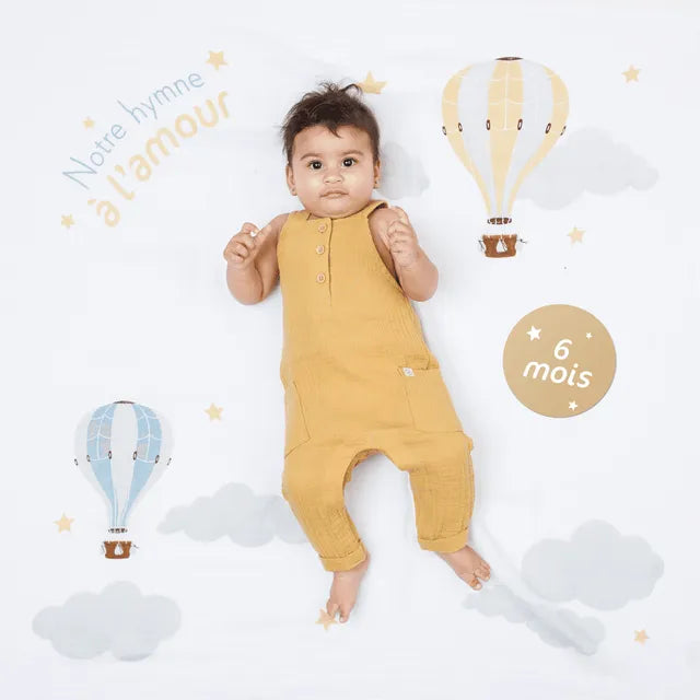 Includes: 1 large muslin blanket + 7 double-sided cards with 14 milestones.