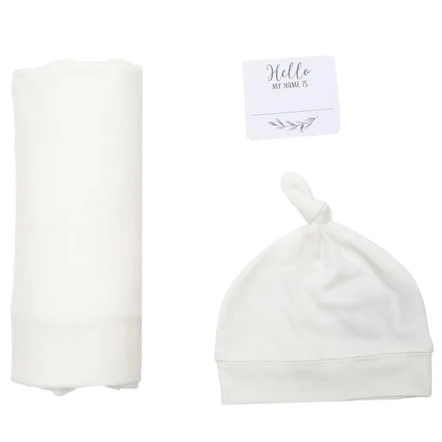 Lulujo Bamboo Hat and Swaddle Blanket - White