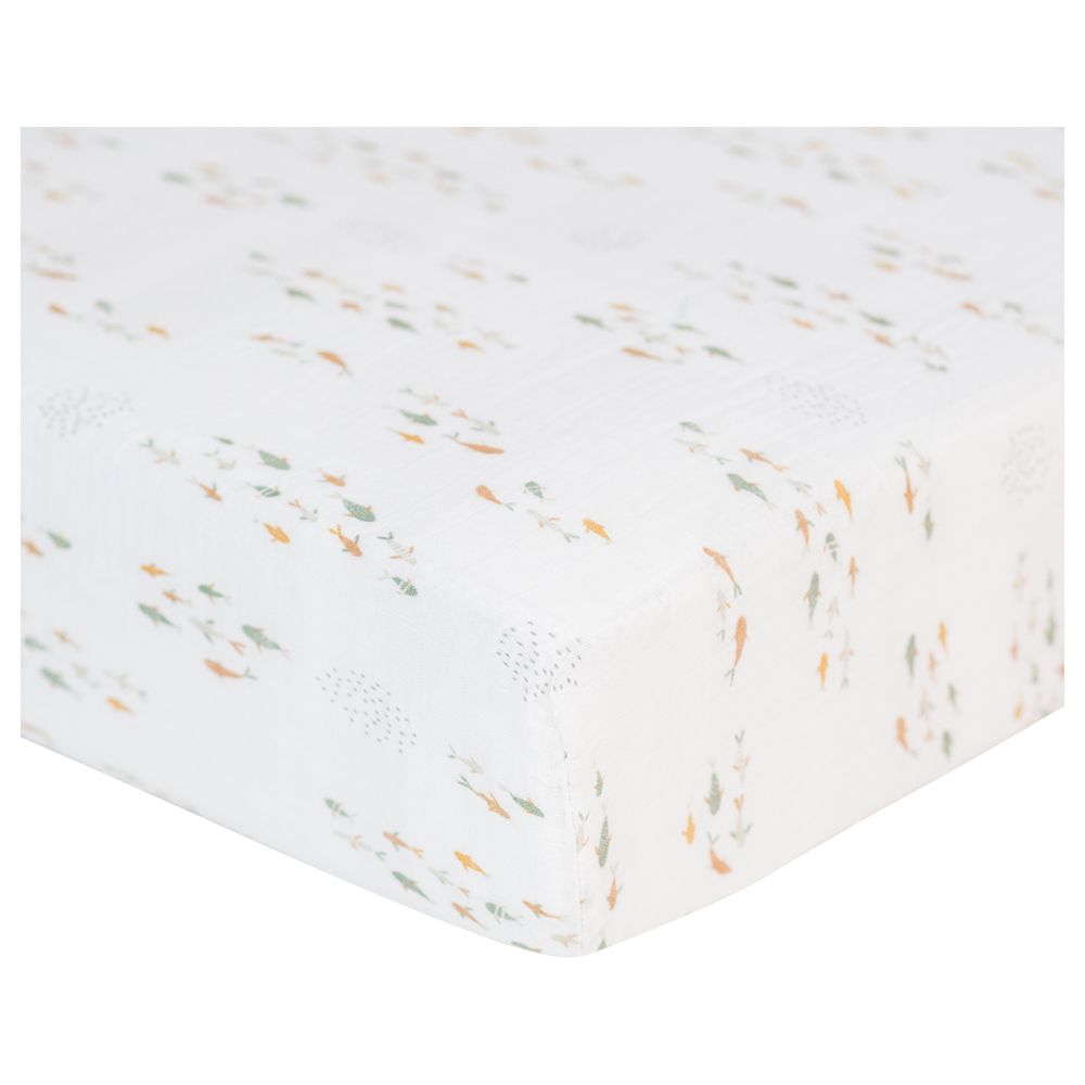 This beautiful crib sheet is designed to fit a standard size crib mattress. Made with our premium 100% cotton muslin, it features a print from our Boho collection that will compliment your baby's stylish nursery. Made with breathable cotton muslin that gets softer with every wash. Matching change pad cover sold separately.