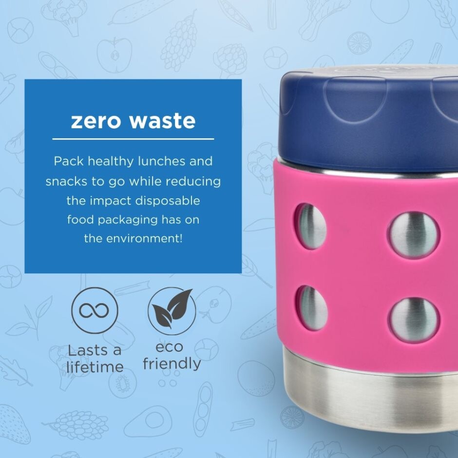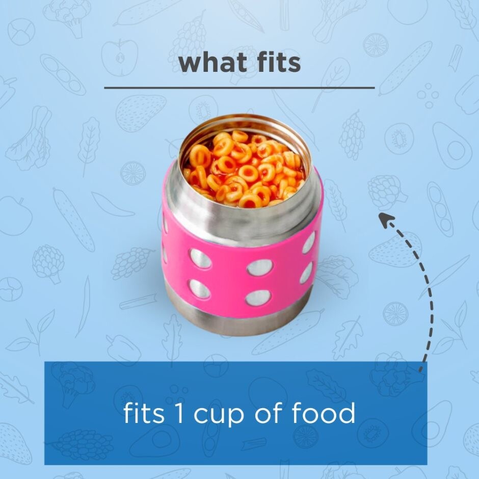 Triple insulated, this 8 oz. Thermal keeps 1 cup of your favorite soup or chili hot until lunchtime! A bright silicone sleeve adds a splash of color and its all-stainless interior means no plastic touches your food. Dishwasher safe.