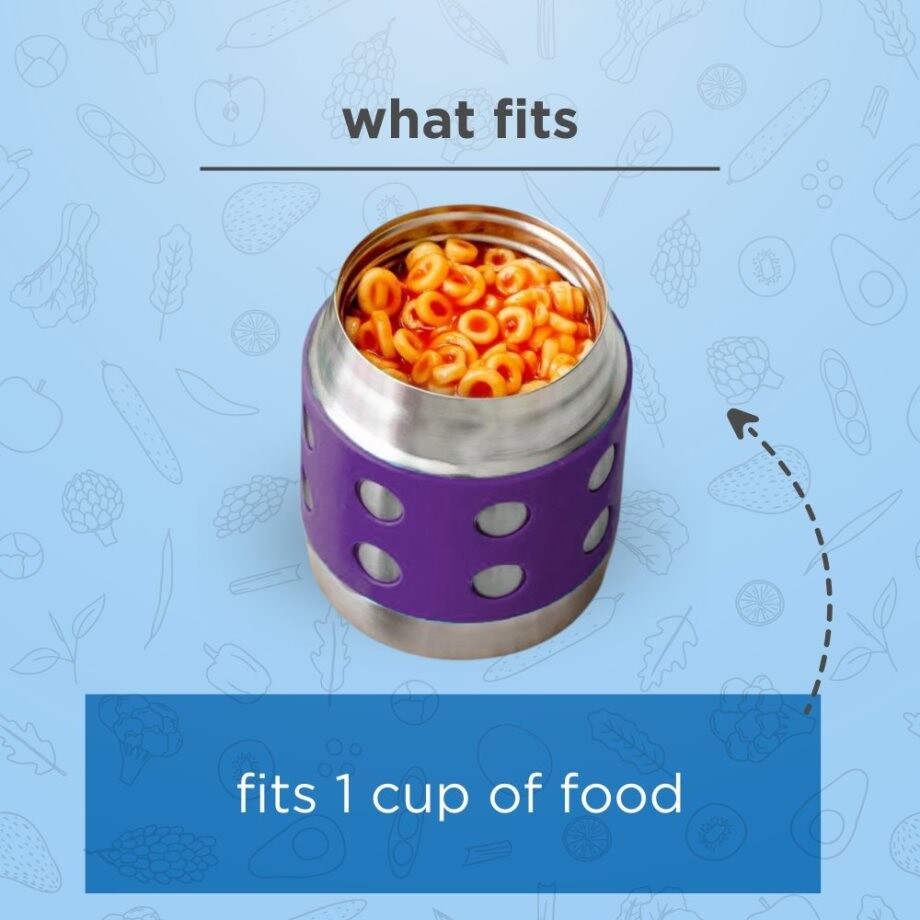 Triple insulated, this 8 oz. Thermal keeps 1 cup of your favorite soup or chili hot until lunchtime! A bright silicone sleeve adds a splash of color and its all-stainless interior means no plastic touches your food. Dishwasher safe.