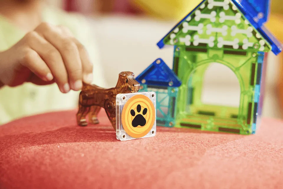 Every family dog deserves a MAGNA-TILES house to call their own! Whether he’s playing in the yard or curling up after a long day of fun, this lovable dog is ready for every adventure your little builder imagines. But the fun doesn’t stop there! With microMAGS pieces, your budding architect can add creative details and decorations to realize the Dog House’s full pet-tential. Whether it's a bright Roof tile, a playful Fence, or the cutest little bowl for their furry friend, these microMAGS inspire big ideas and bring each build to life.?Perfect on its own or paired with the MAGNA-TILES Cat Tree or Hamster Ball sets for a fully interactive pet-themed world. Combine it with the MAGNA-TILES Pet Playhouse for even bigger builds and more imaginative play. Packed with opportunities to spark creativity, encourage storytelling, and explore the joy of design, the Dog House Set is paws-itively packed with possibilities!