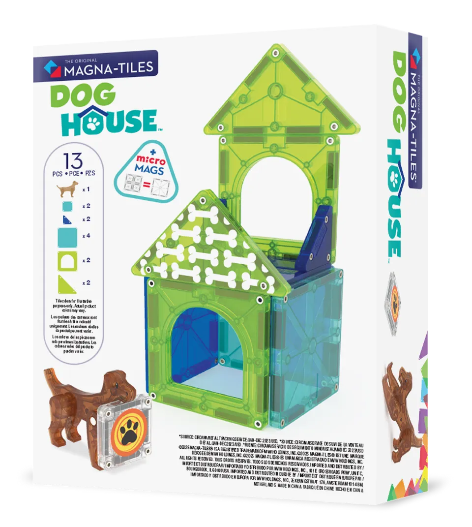 - The MAGNA-TILES Dog House 13-Piece Set is uniquely designed with microMAGS pieces and a charming dog figure, allowing kids to create and decorate a cozy home for their furry friend while inspiring imaginative, paws-itively fun play.