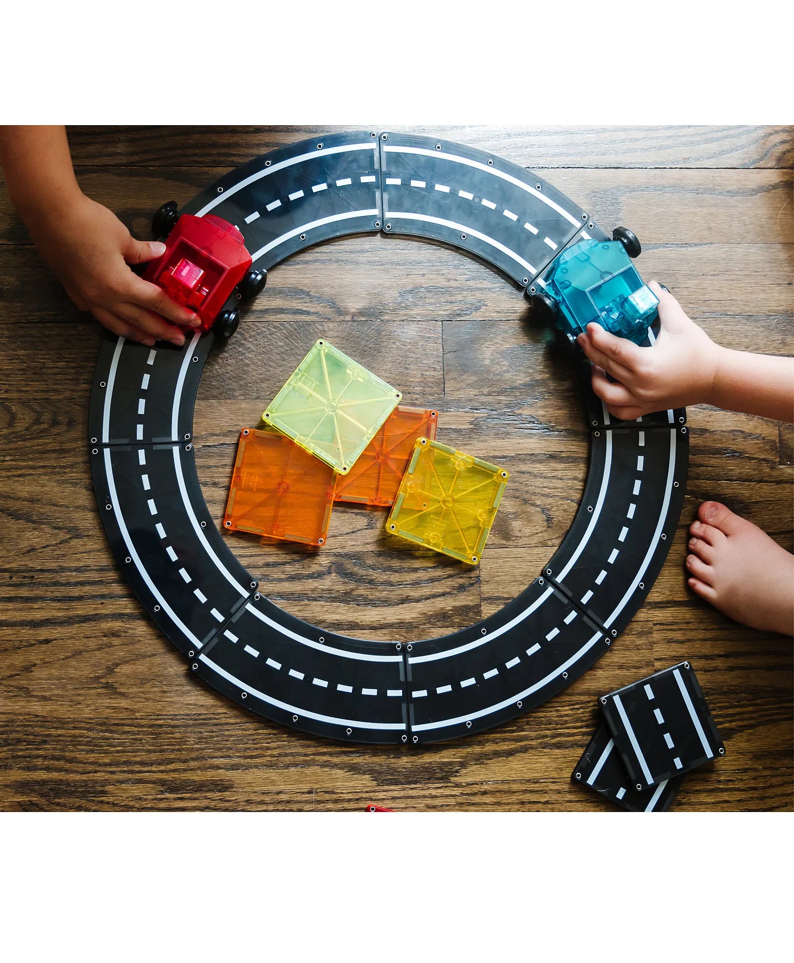MAGNA-TILES fans have spoken! Most requested and highly anticipated, the new MAGNA-TILES XTRAS Roads 12-Piece Set allows little ones to create countless road configurations for their favorite toys and vehicles. Magnetic roads easily connect and reconnect for multiple building options.
